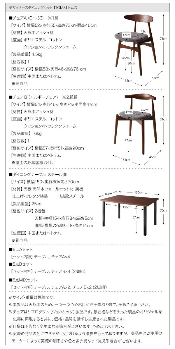 • 品名 北欧デザイナーズダイニング TOMS【トムズ】ダイニングテーブル(幅150cm)