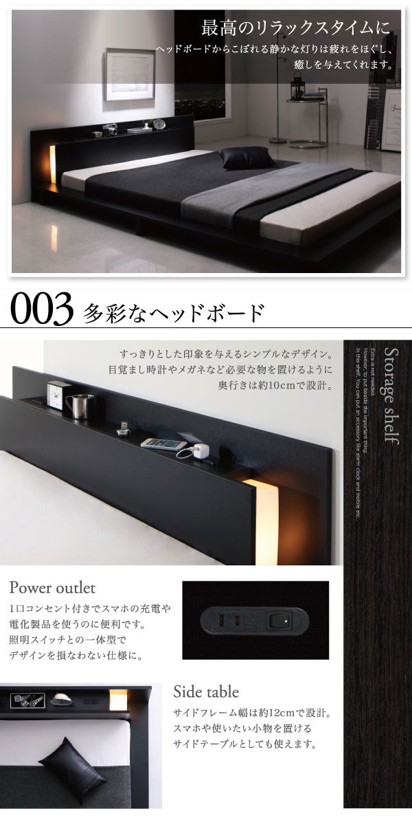 モダンライト・コンセント付きフロアベッド Raine【ライネ】ベッドフレームのみ シングルの商品写真