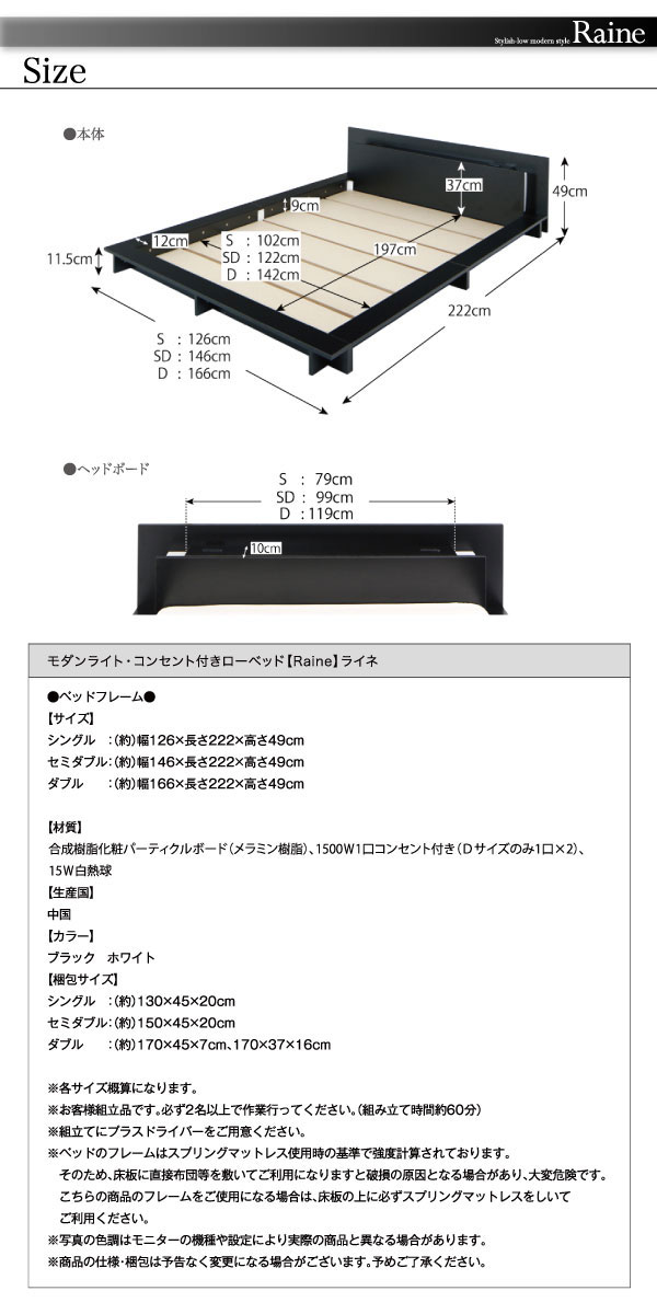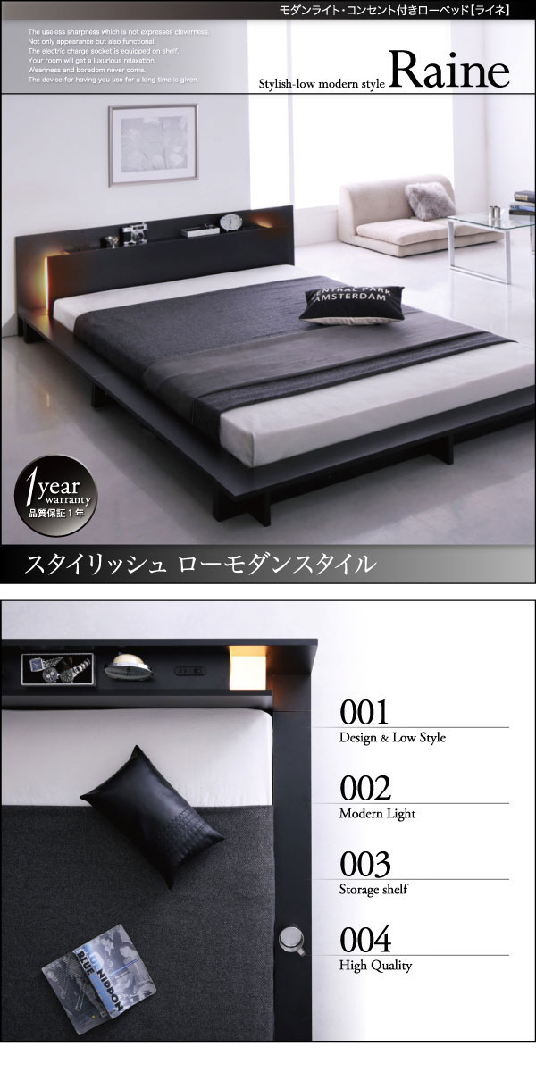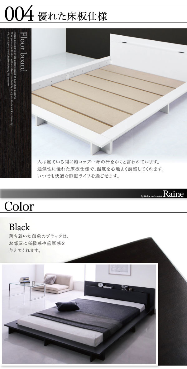 • 品名 モダンライト・コンセント付きフロアベッド Raine【ライネ】ベッドフレームのみ シングル
