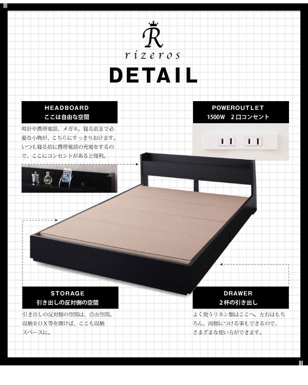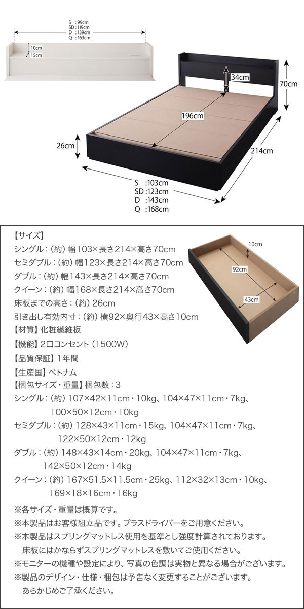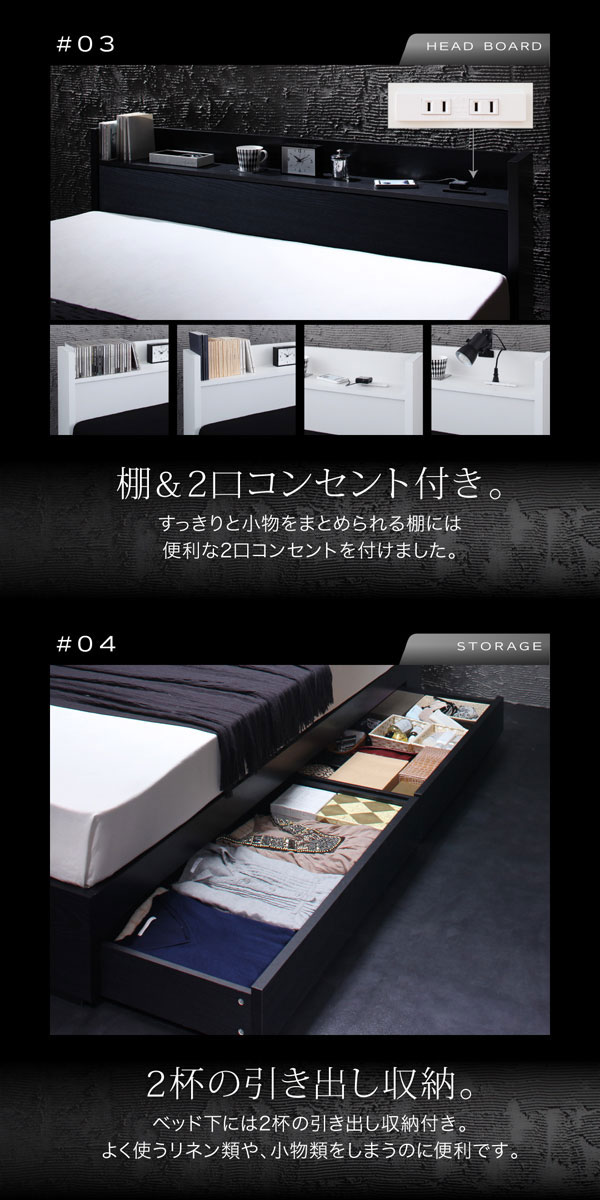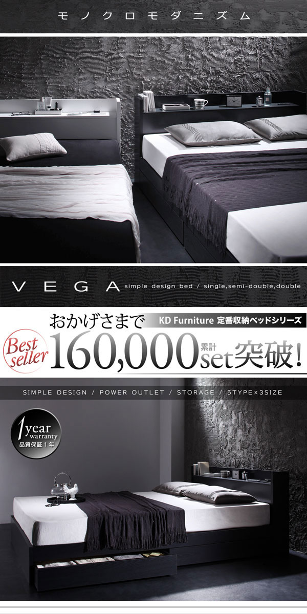 • 品名 棚・コンセント付き収納ベッド VEGA【ヴェガ】ベッドフレームのみ ダブル