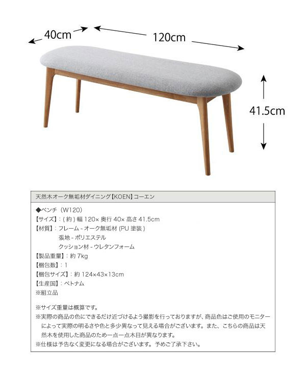 • 品名 天然木オーク無垢材ダイニング KOEN【コーエン】ベンチ 送料無料(北海道・沖縄別途送料・離島へは配送不可)