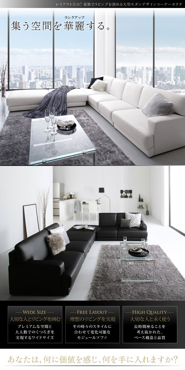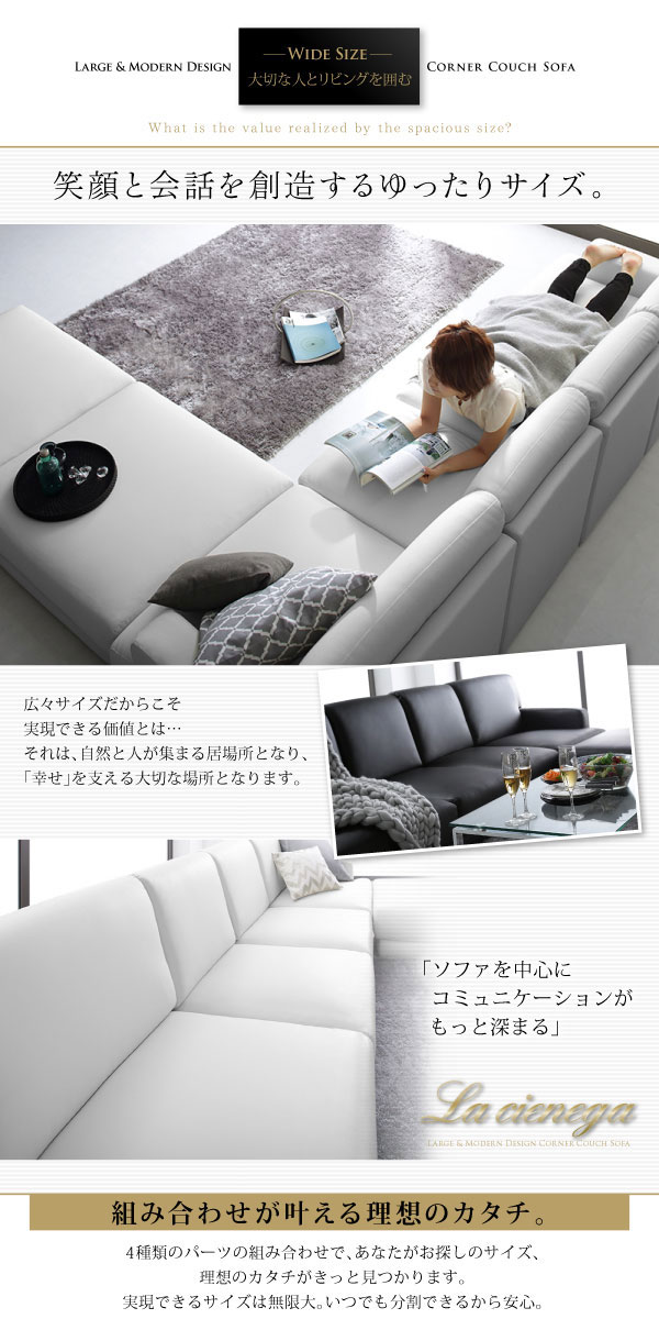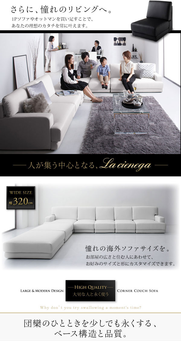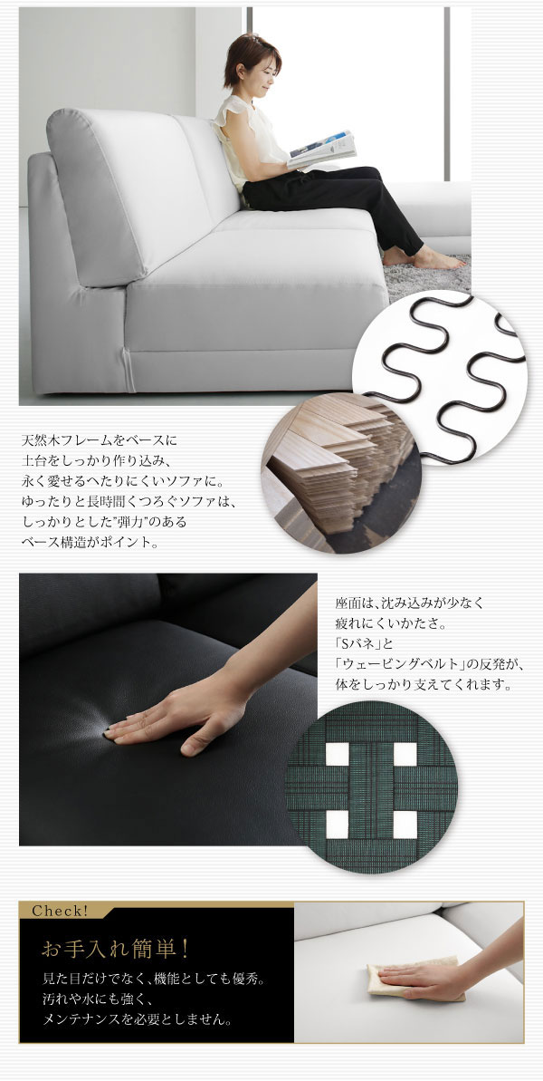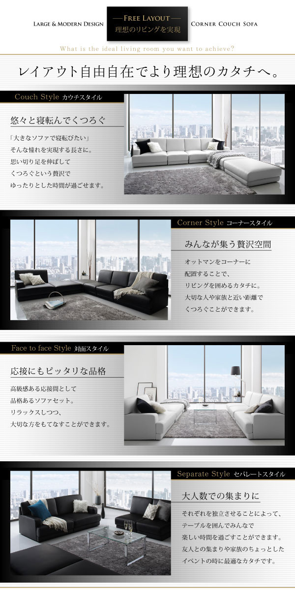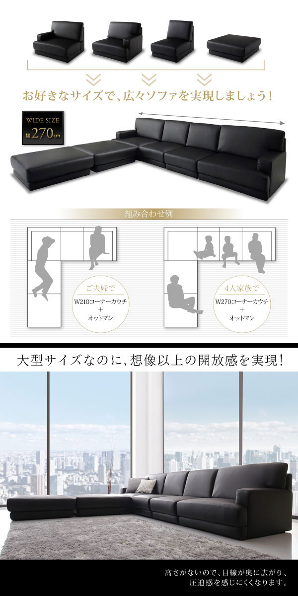 レザーカウチローソファー SQURE【スクーレ】5点セット(左右肘ソファー+1P+オットマン×2)の商品写真