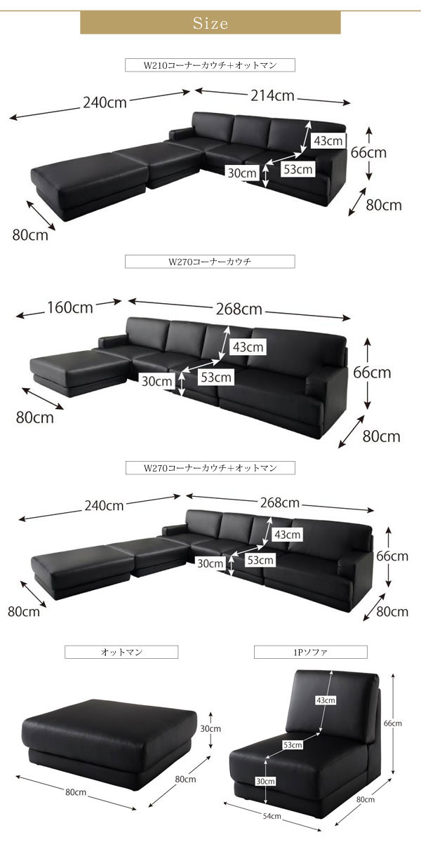 • 品名 レザーカウチローソファー SQURE【スクーレ】5点セット(左右肘ソファー+1P+オットマン×2)
