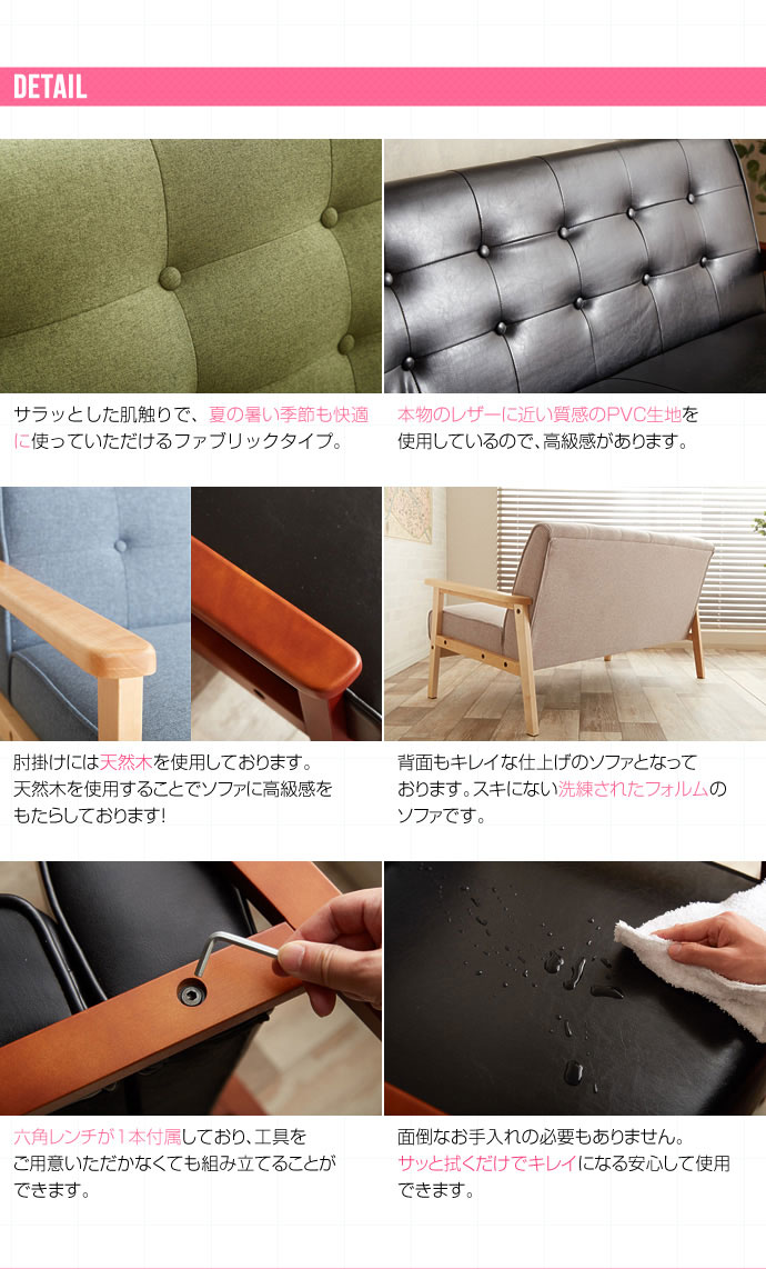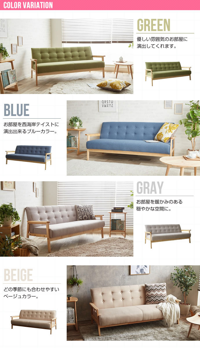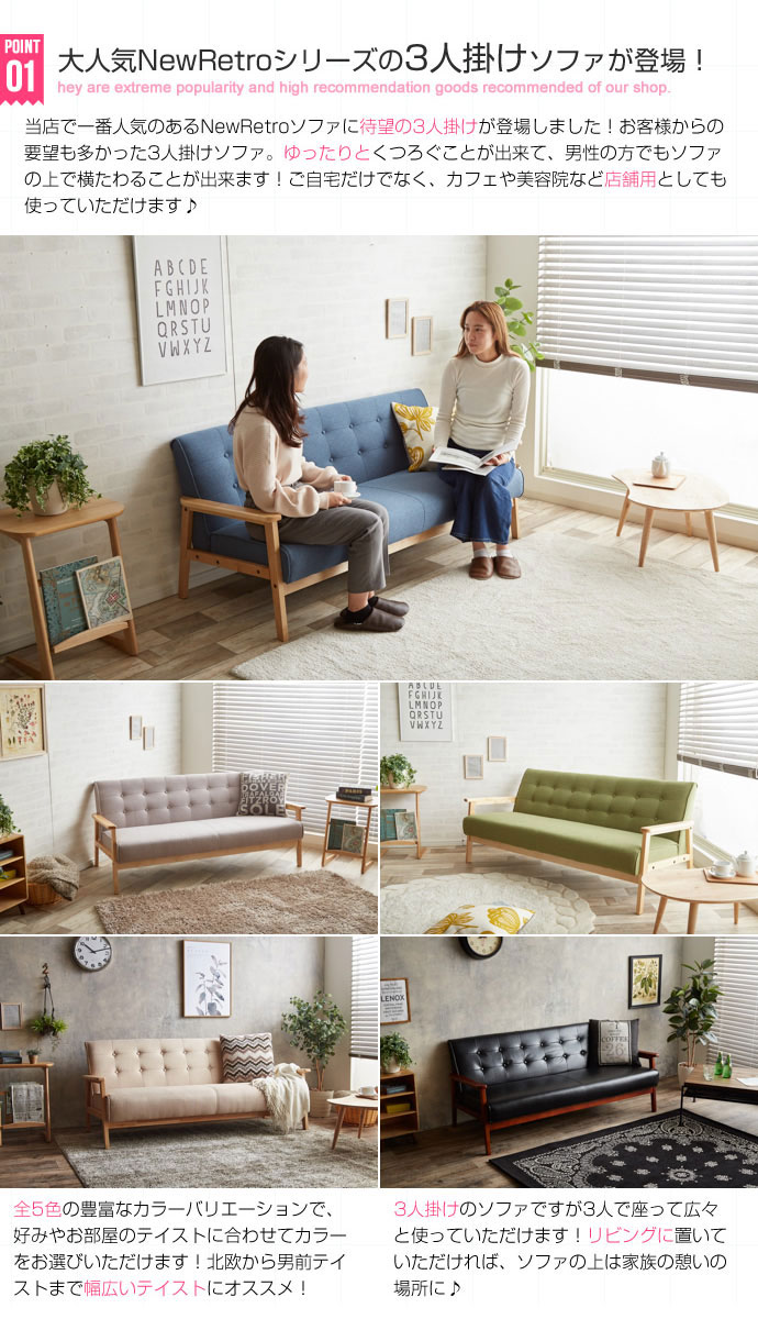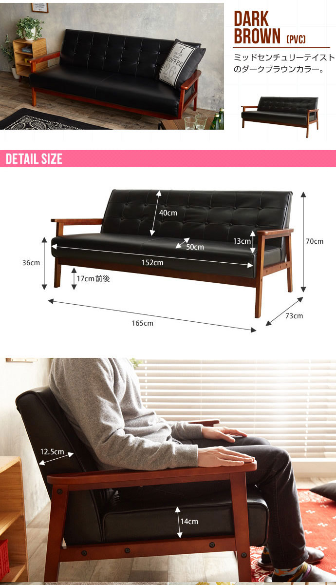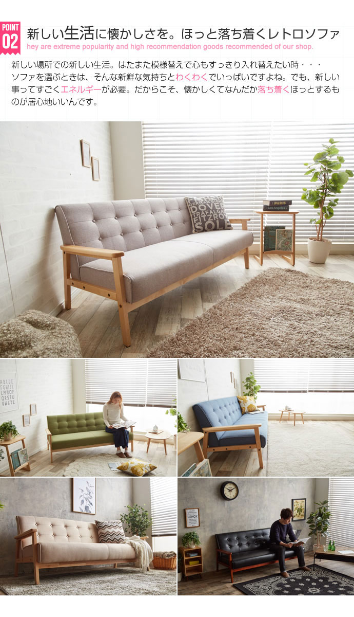 • 品名 北欧木肘ソファ RETRO【レトロ】3人掛けソファ