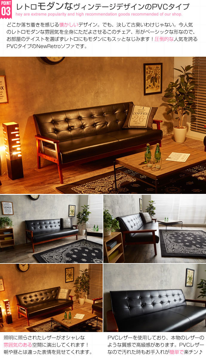 北欧木肘ソファ RETRO【レトロ】3人掛けソファの商品写真