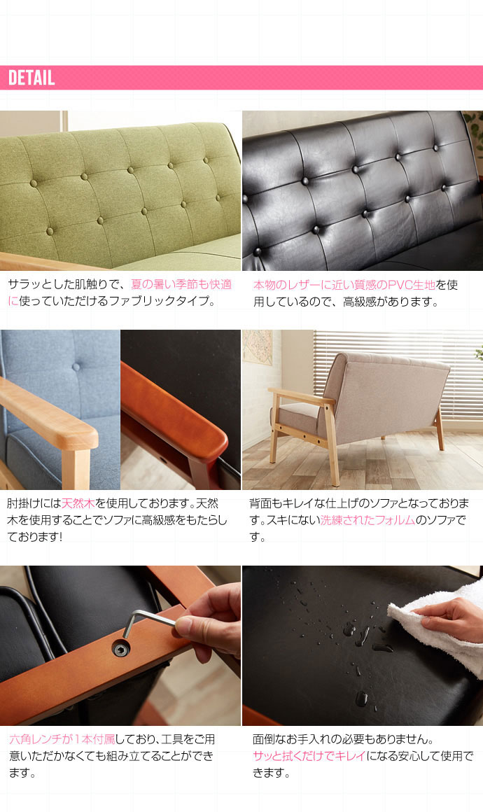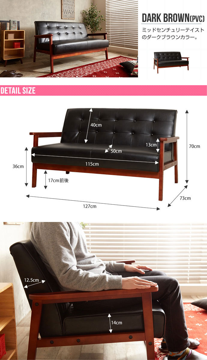 懐かしくて落ち着く、なんだかほっとするソファ、そんなソファを追求したらスタンダードなフォルムになりました。一人暮らしにも最適なサイズの、2人掛けソファーです。同シリーズの1人掛けソファ、3人掛けソファもございます。