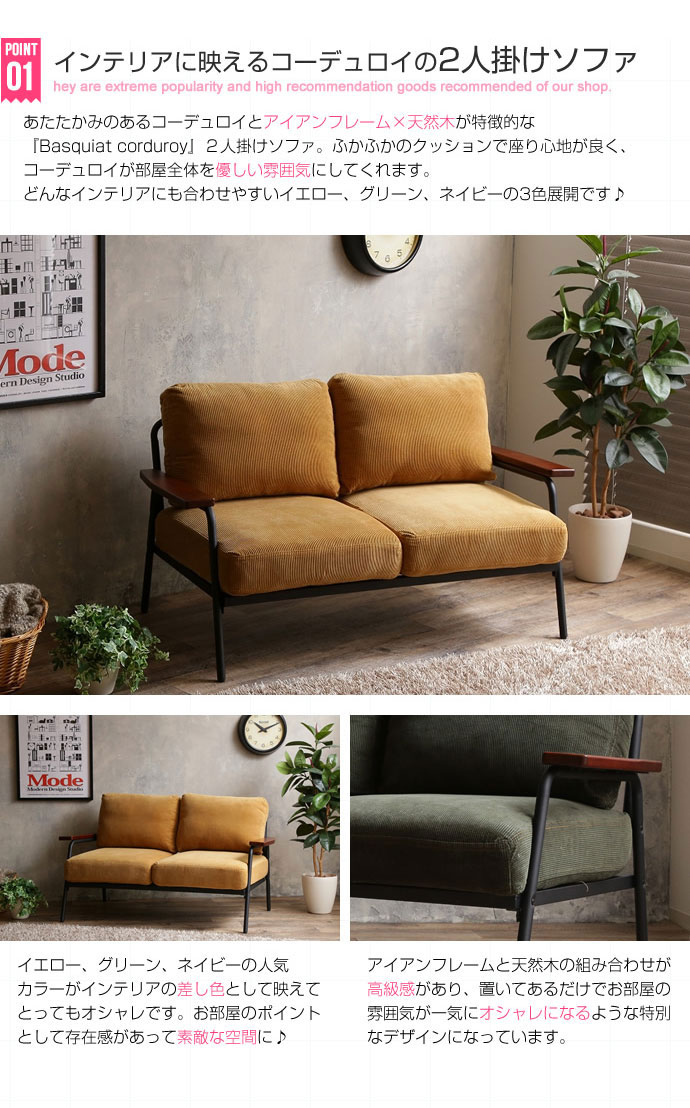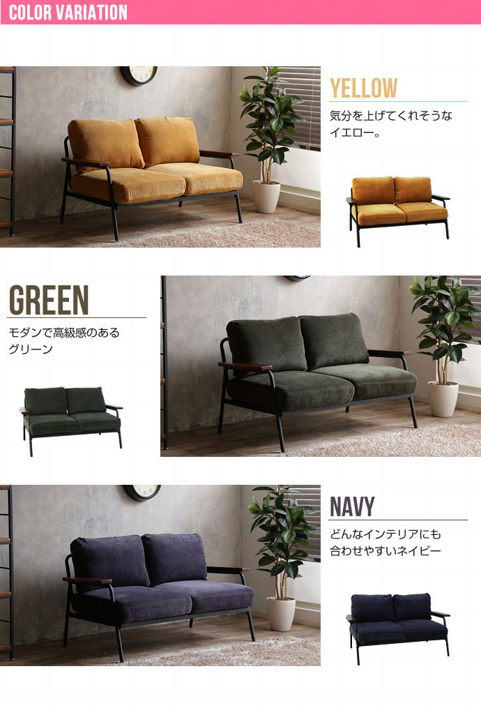 あたたかみのあるコーデュロイがお部屋を優しく演出してくれます。お色はナチュラルで可愛らしいイエロー、モダンで高級感のあるグリーン、スタリッシュで合わせやすいネイビーの3色展開です♪