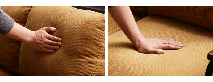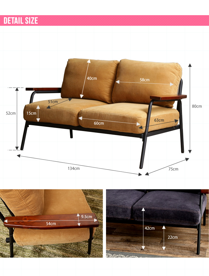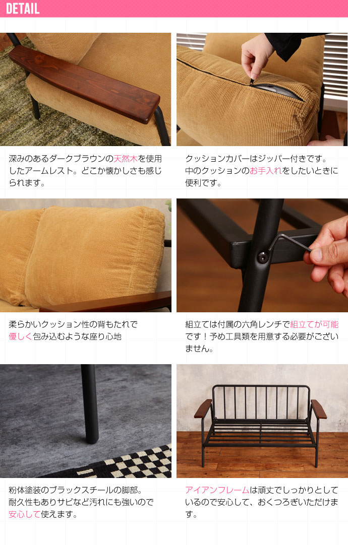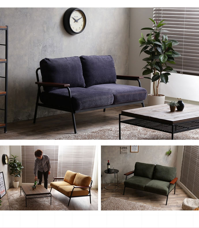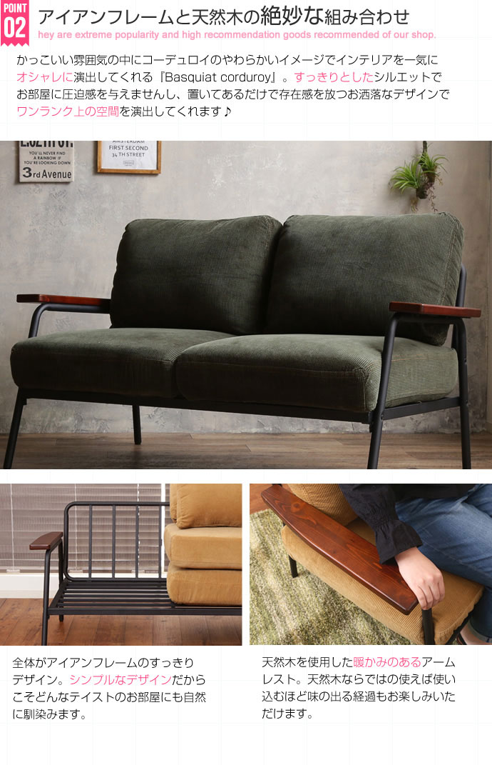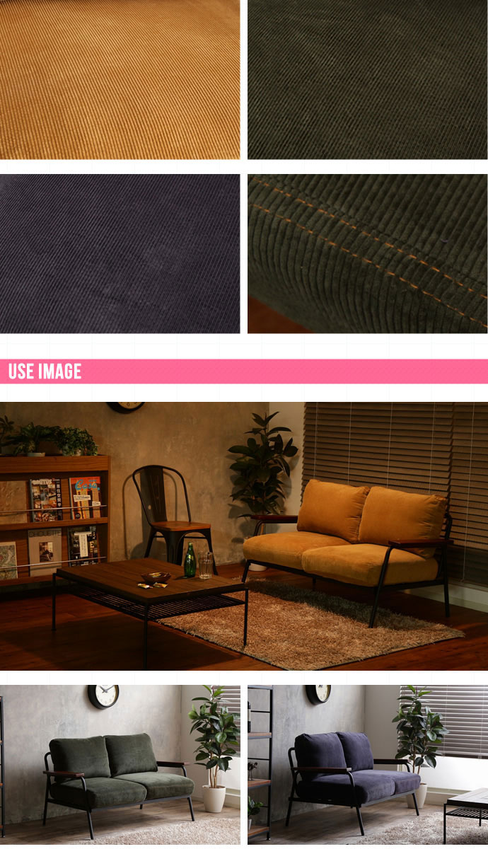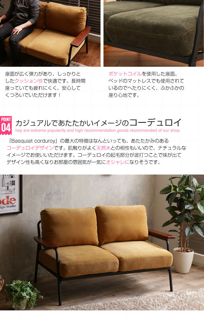ウレタンフォーム・ポケットコイル・コーデュロイ・スチール 肘掛け:天然木