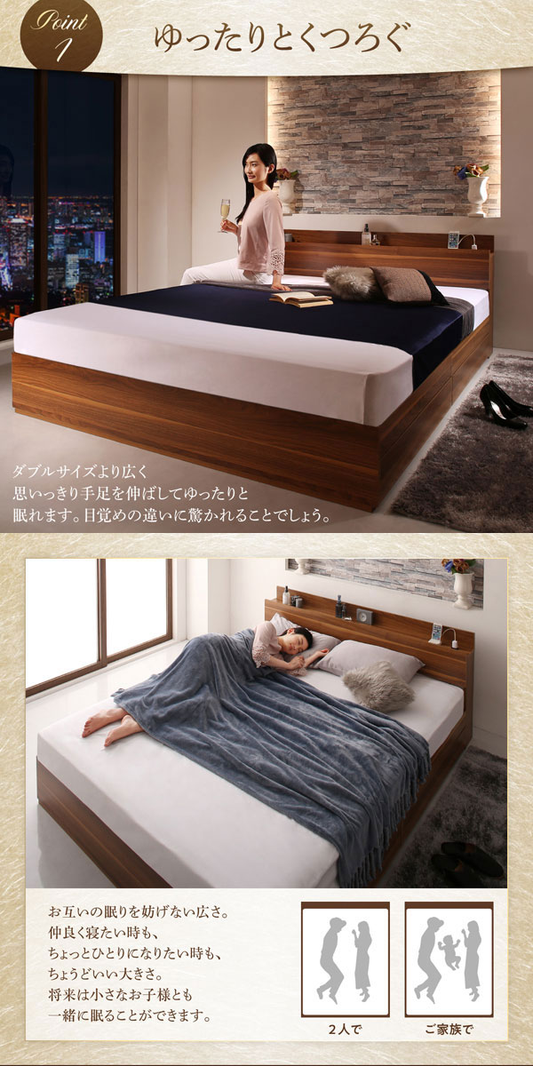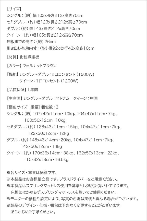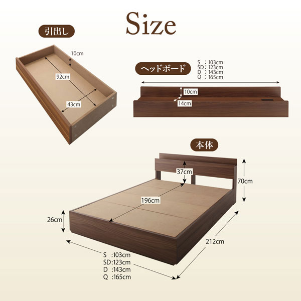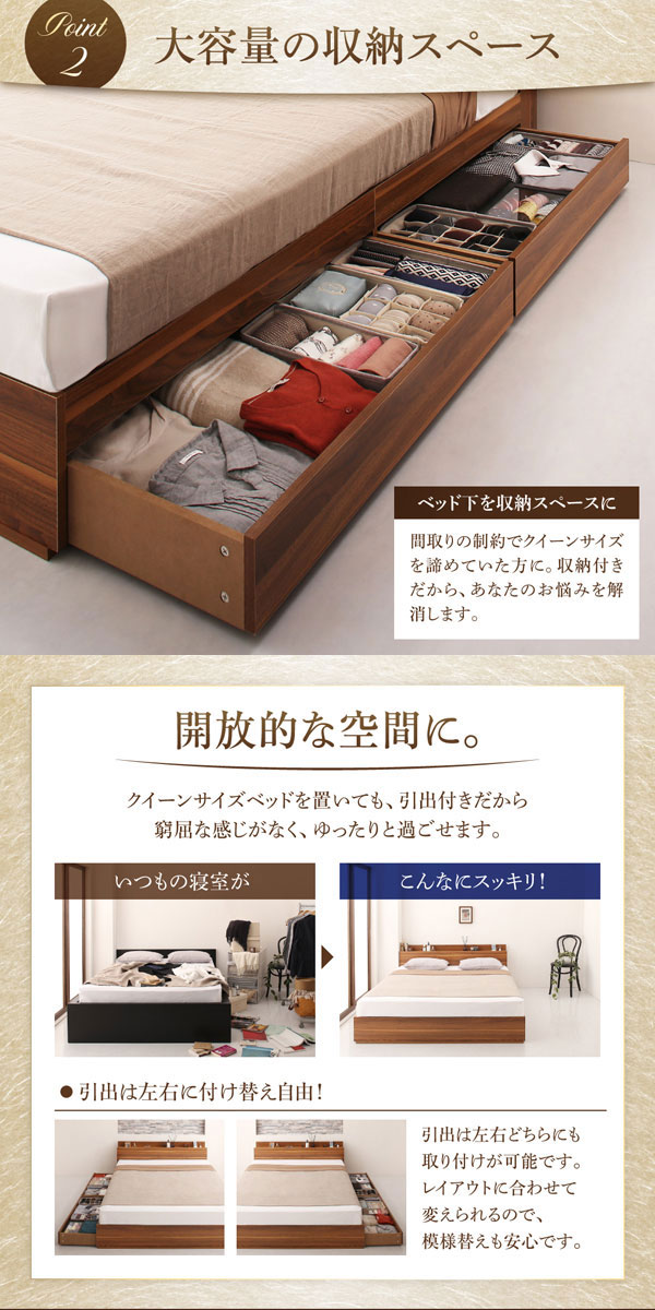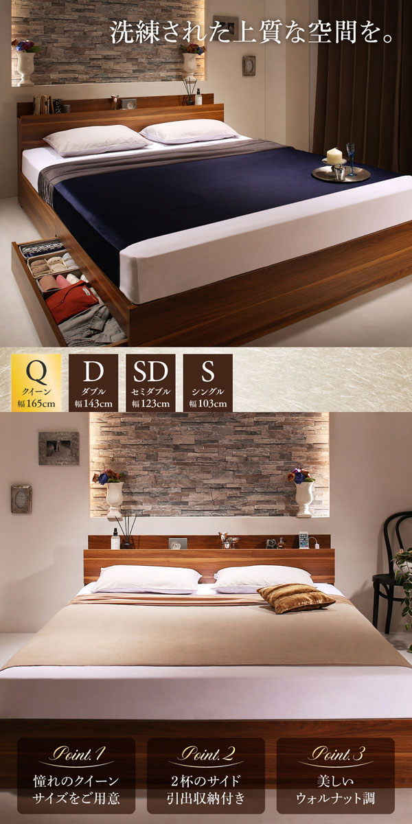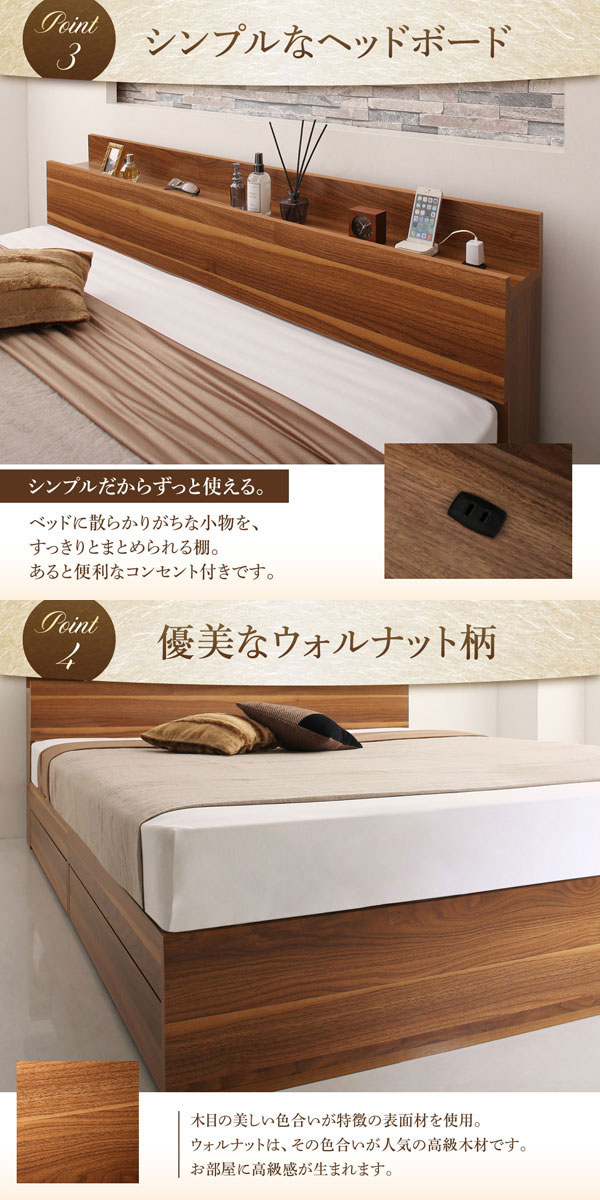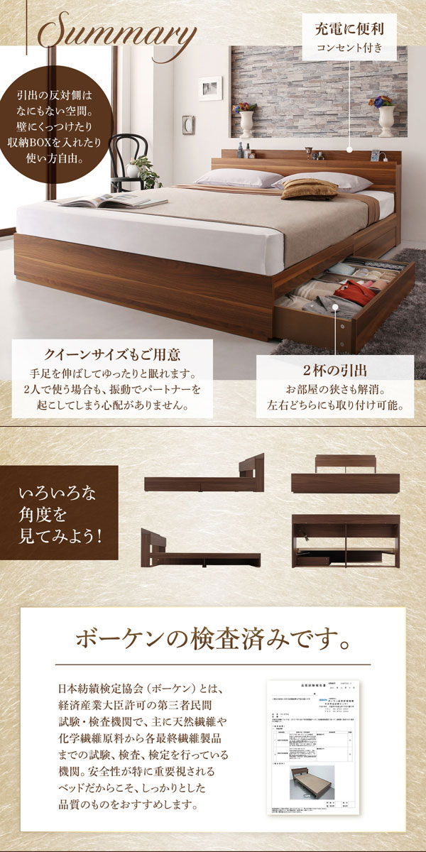 • 品名 棚・コンセント付き収納ベッド Irvine【アーヴァイン】ベッドフレームのみ クイーン