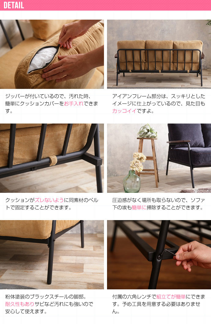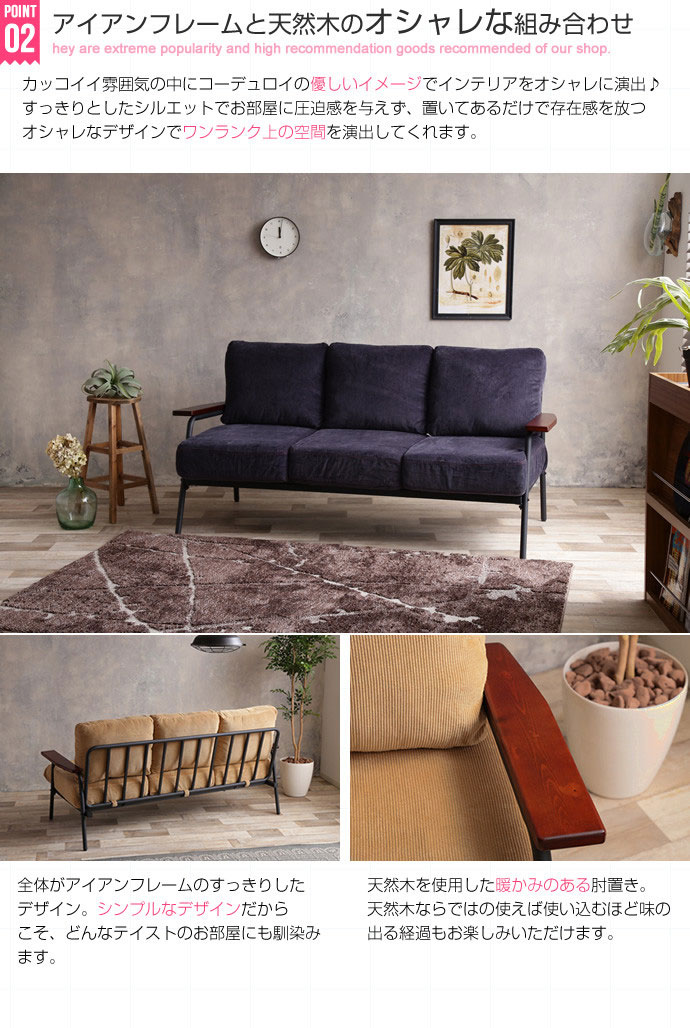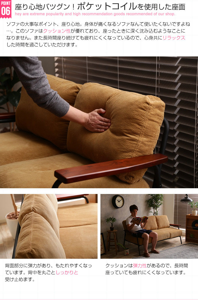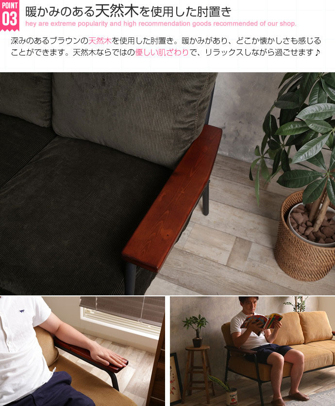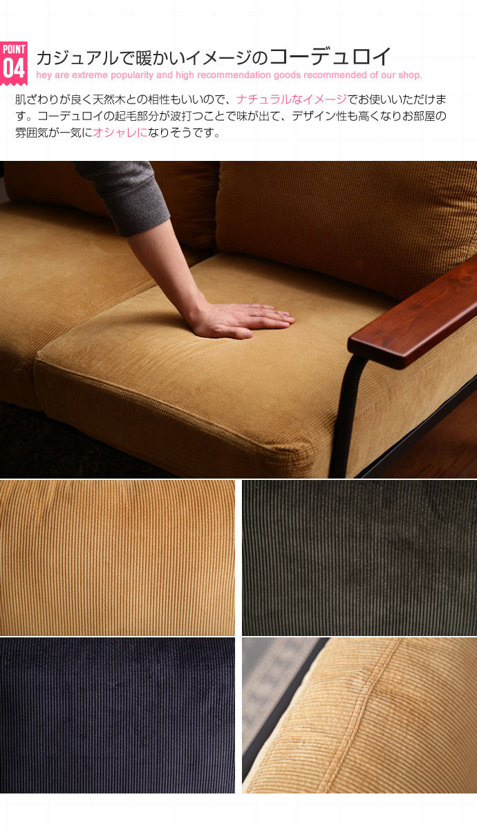 ウレタンフォーム・ポケットコイル・コーデュロイ・スチール 肘掛け:天然木
