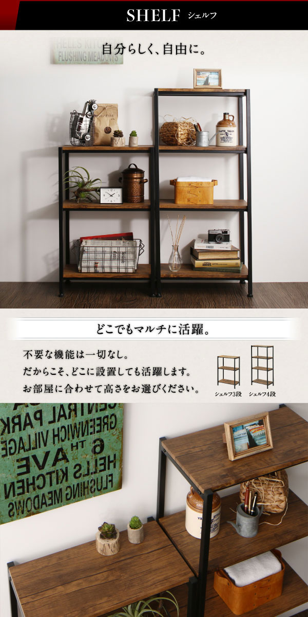 • 品名 ヴィンテージ調リビング収納シリーズ Cordette【コルデット】棚・シェルフ 高さ108