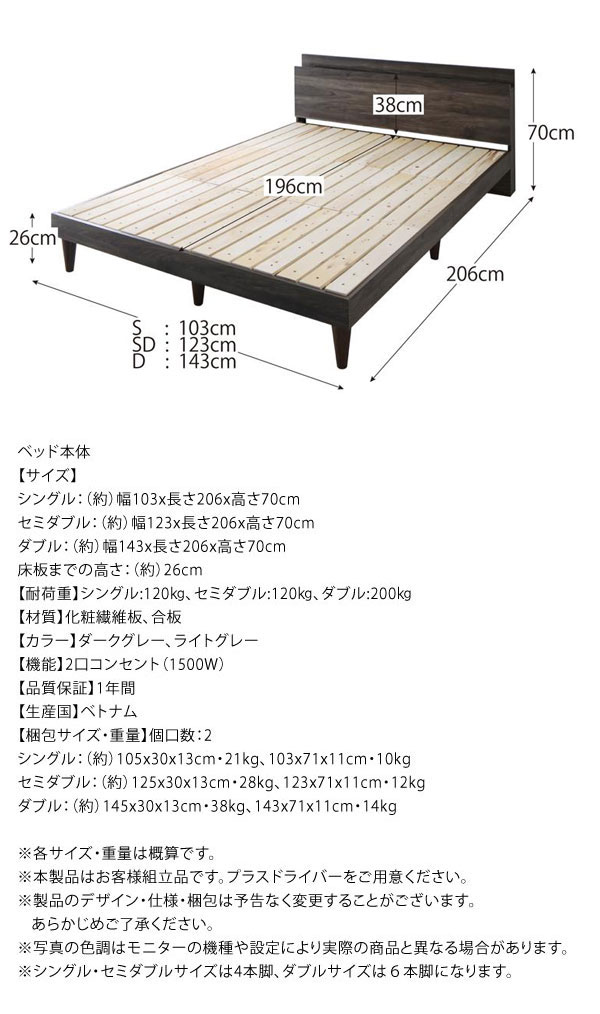 • 品名 デザインすのこベッド Grayster【グレイスター】ベッドフレームのみ シングル