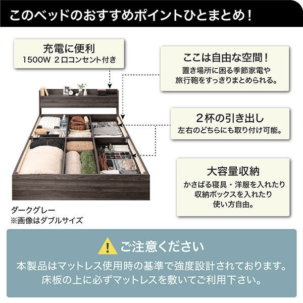 • 品名 収納ベッド Ever 3【エヴァー3】ベッドフレームのみ ダブル