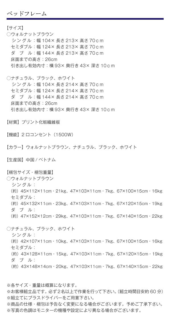 • 品名 すのこ収納ベッド Aneia【アネラ】ベッドフレームのみ ダブル