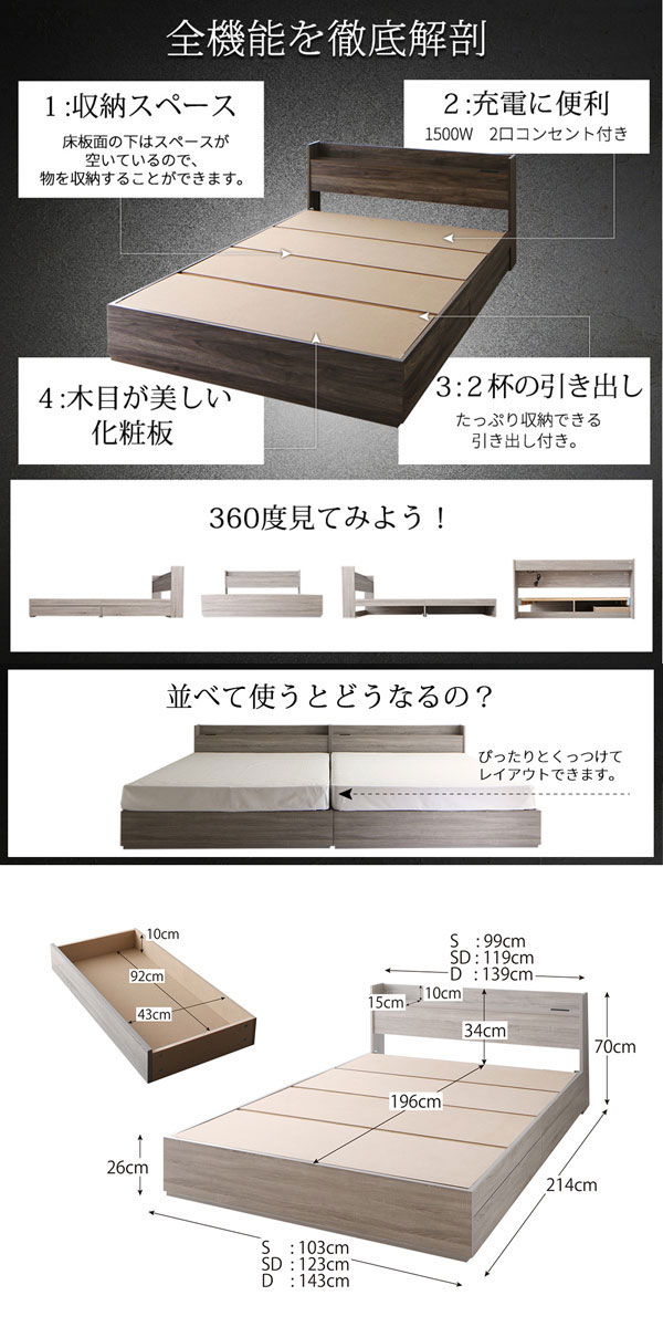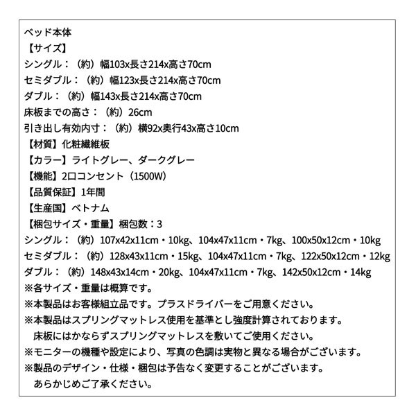 • 品名 収納ベッド JEGA【ジェガ】ベッドフレームのみ セミダブル