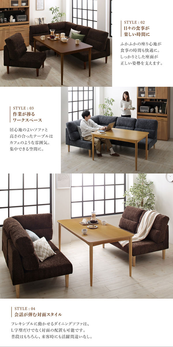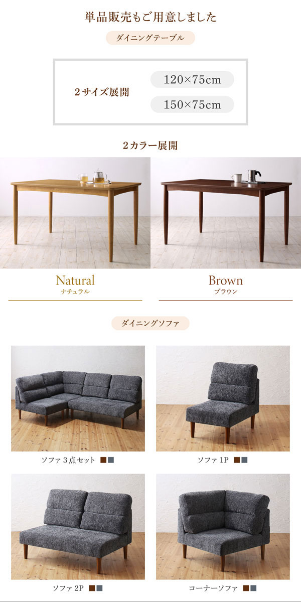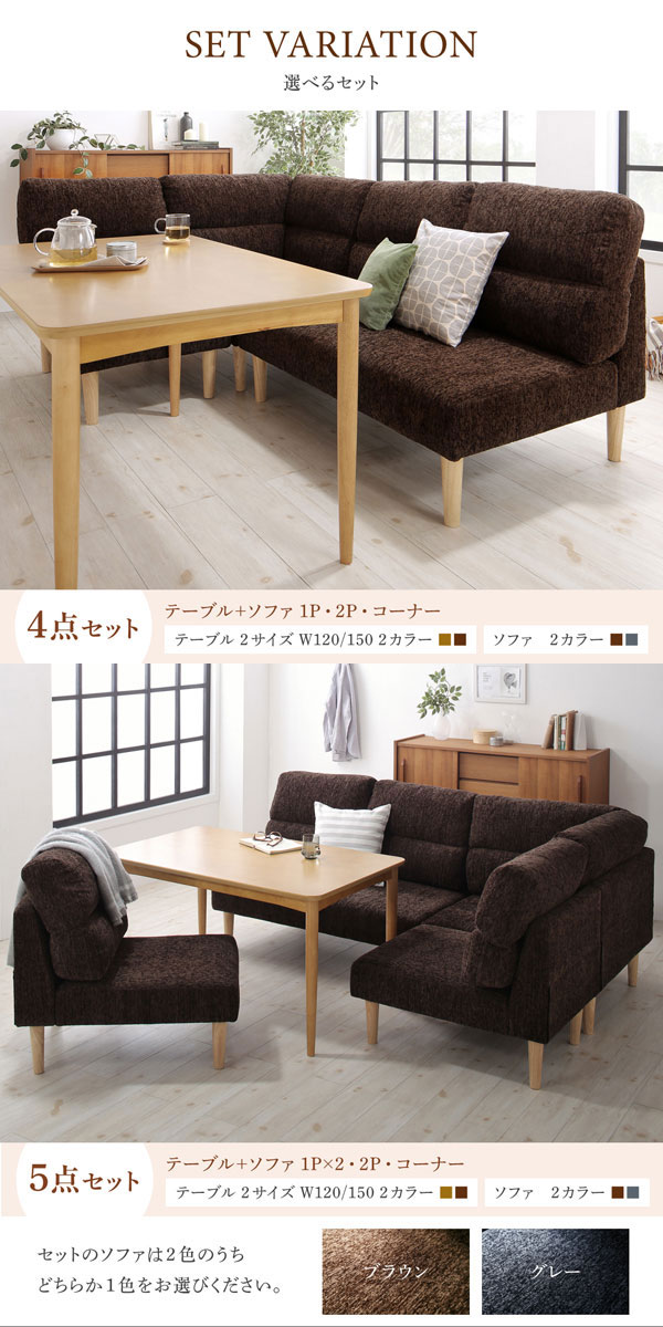 ハイバックソファダイニングテーブルセット Laurent【ローラン】4点セット(ダイニングテーブル+2Pソファ1脚+1Pソファ1脚+コーナーソファ1脚) 幅120cm 4人掛けの商品写真