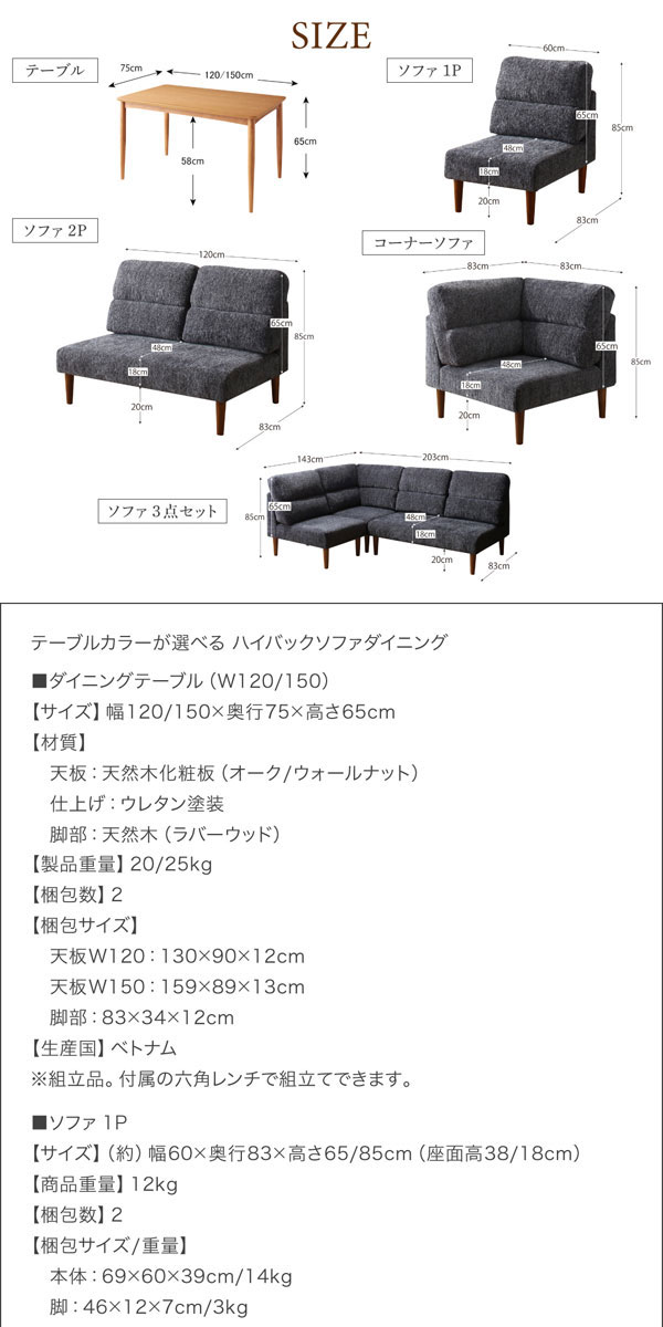 • 品名 ハイバックソファダイニングテーブルセット Laurent【ローラン】4点セット(ダイニングテーブル+2Pソファ1脚+1Pソファ1脚+コーナーソファ1脚) 幅120cm 4人掛け
