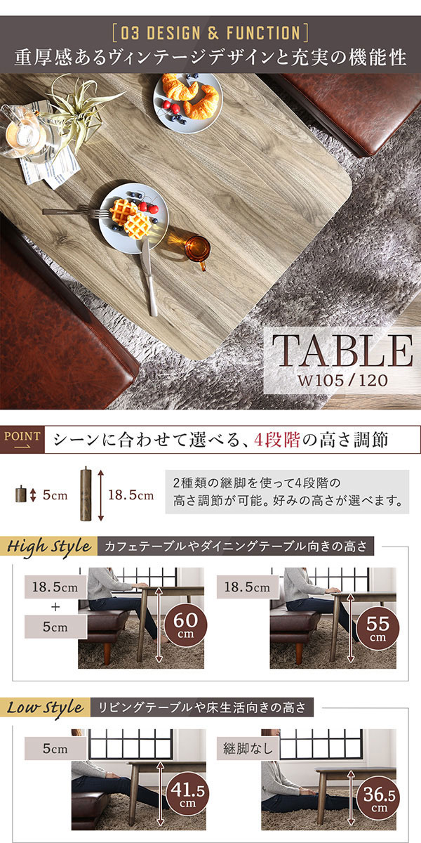• 品名 高さ調節できるMeunter【ミュンター】ダイニングこたつテーブル 幅105cm