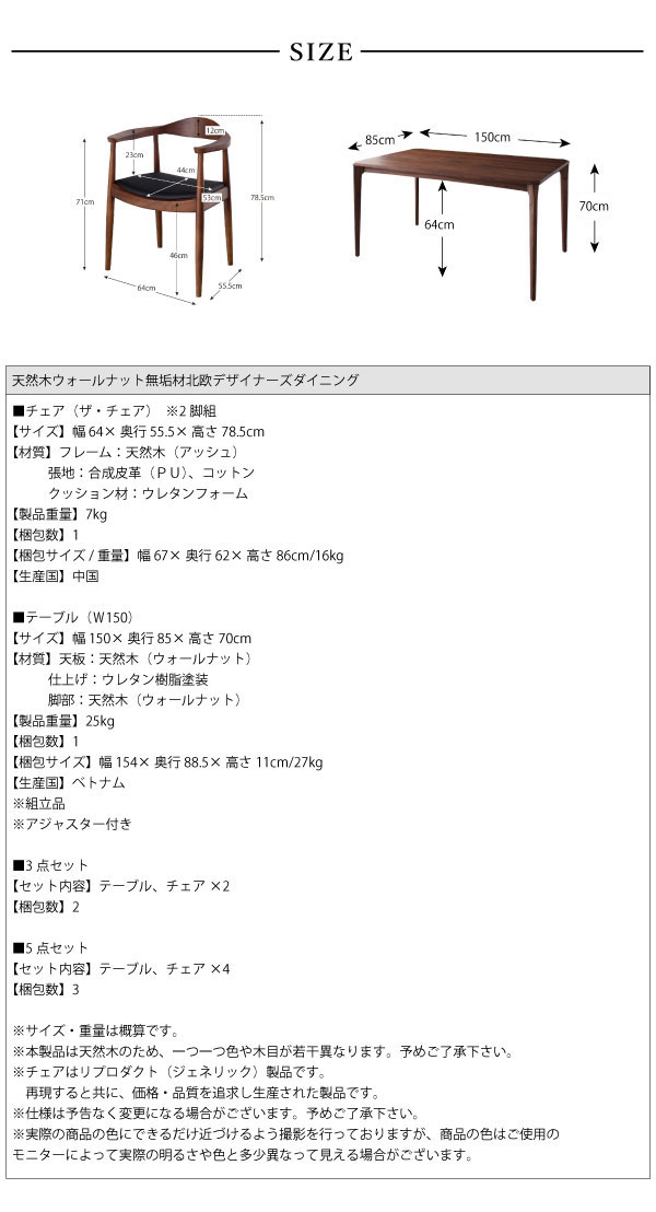 • 品名 北欧デザイナーズダイニング W.K.【ダブルケー】ウォールナット無垢材ダイニングテーブル幅150