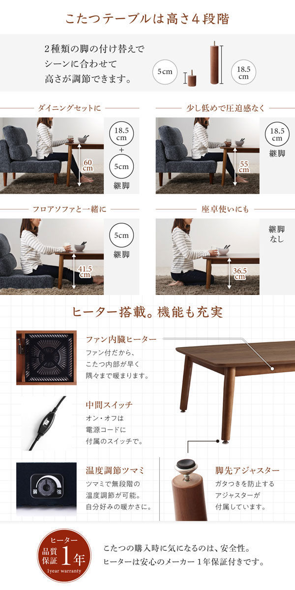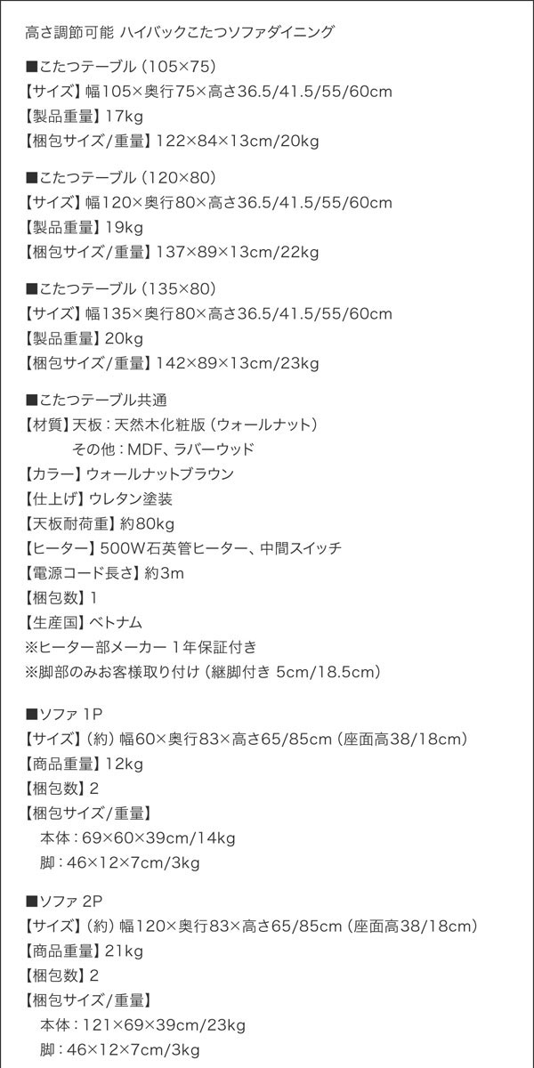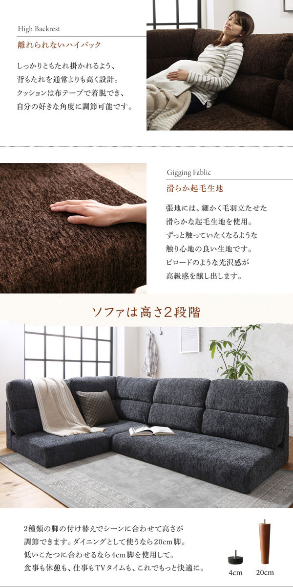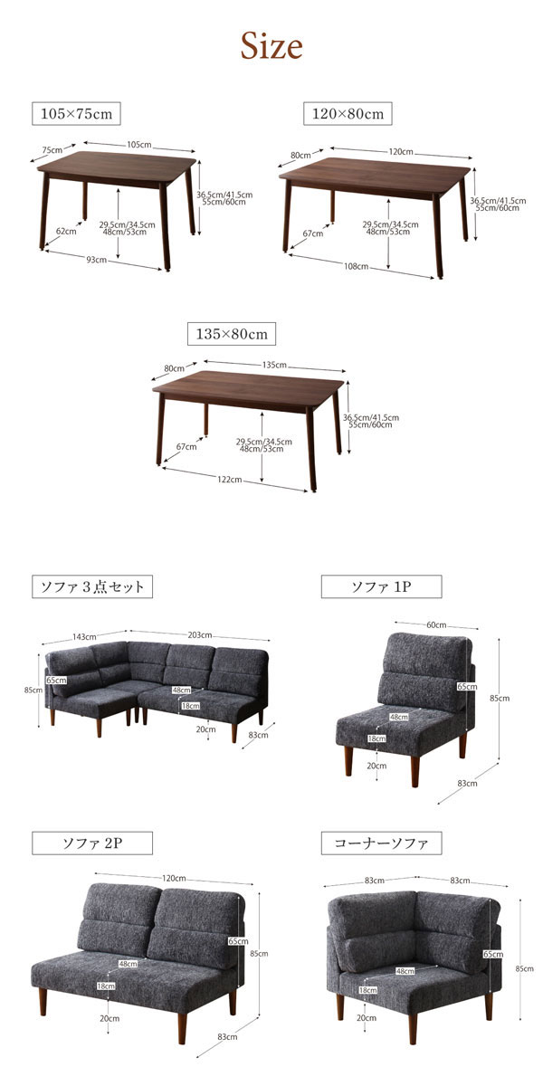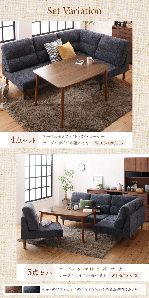 • 品名 高さが調節できる、ハイバックこたつダイニングソファセット Laurent2【ローラン2】5点セット(ダイニングテーブル+2Pソファ1脚+1Pソファ2脚+コーナーソファ1脚) 幅105cm 5人掛け