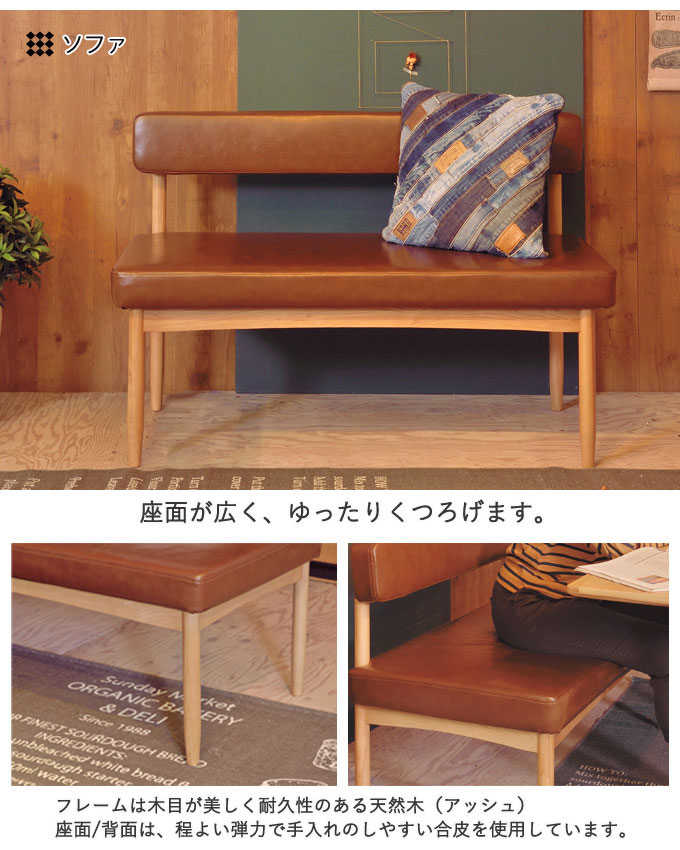 洗練されたモダンノルディックデザインプロダクト。繊細なフォルムがお部屋をコントラストの効いた北欧風の印象に。北欧デザインコンパクトソファーダイニングシリーズ。カラーはおしゃれなブラウンの合皮レザーに天然木(アッシュ)を組み合わせた温かい印象。レイアウトは自由に配置できるので色々なお部屋に合わせて頂けます。低めの仕様なのでお子様も使いやすいサイズ感です。