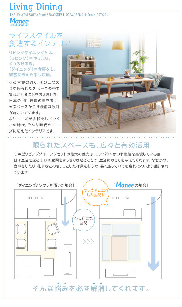 • 品名 北欧スタイルソファダイニング Manee【マニー】 ベンチ 送料無料(北海道・沖縄別途送料・離島へは配送不可)
