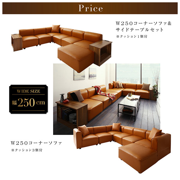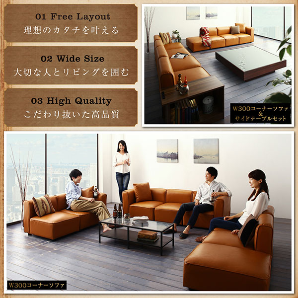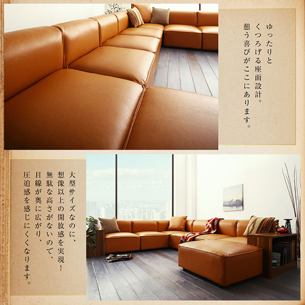 カウチソファ UNONU【ウノン】300cm キャメル コーナーソファ(コーナー×3+1P×4+オットマン×1+クッション×3)の商品写真