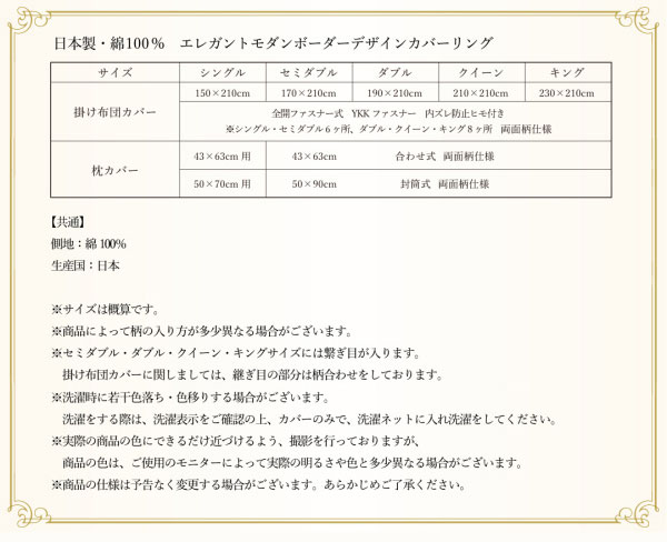• 品名 日本製・綿100% エレガントモダンボーダーデザインカバーリング winkle【ウィンクル】掛け布団カバー キング