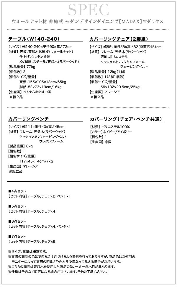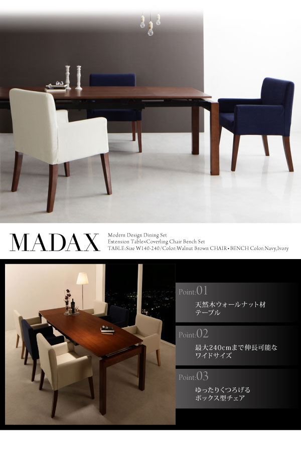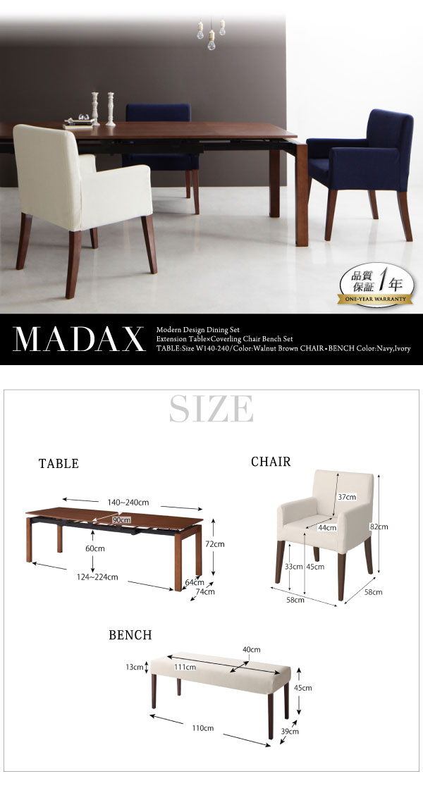 • 品名 ウォールナット材 伸縮式 モダンデザインダイニング MADAX【マダックス】チェア別売りカバー(1枚) 送料無料(北海道・沖縄別途送料・離島へは配送不可)