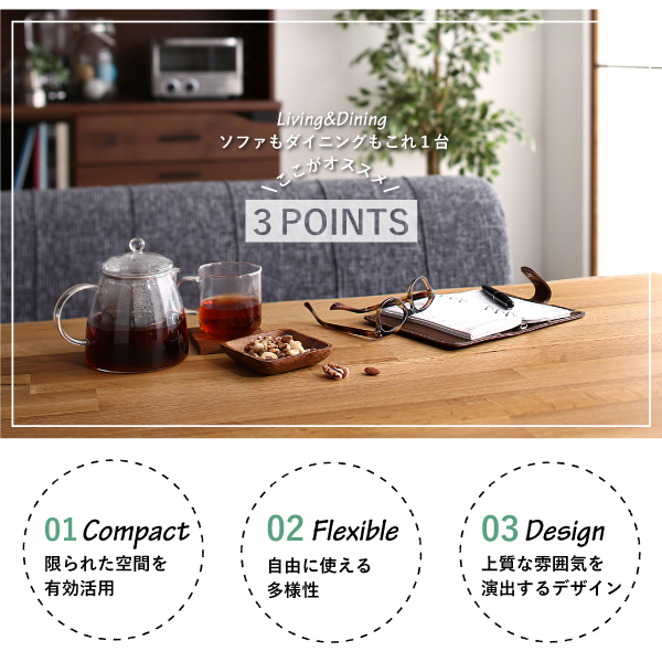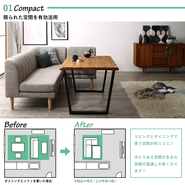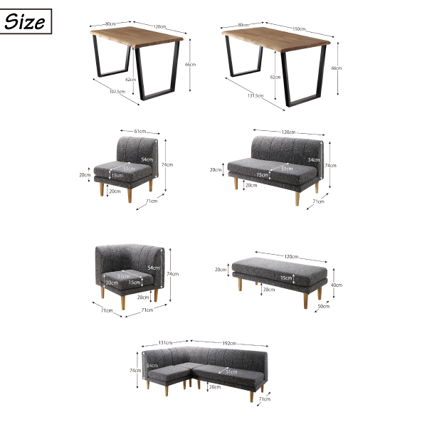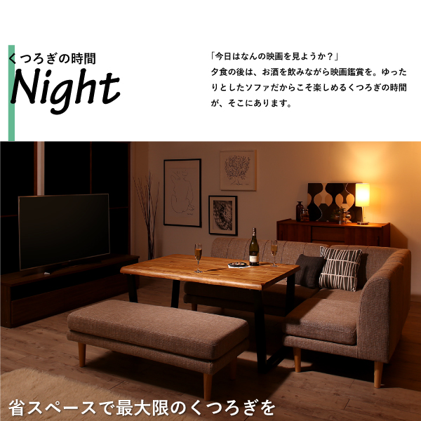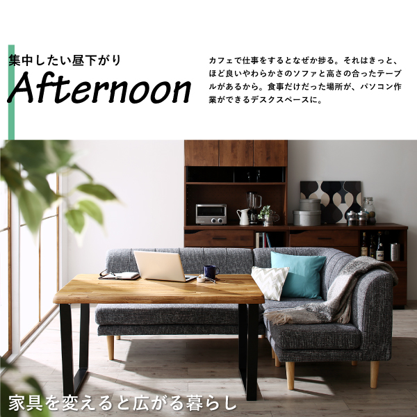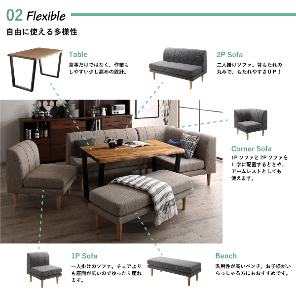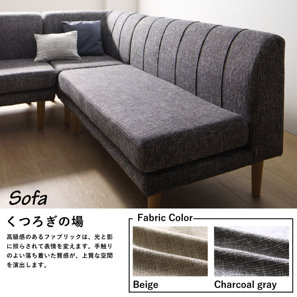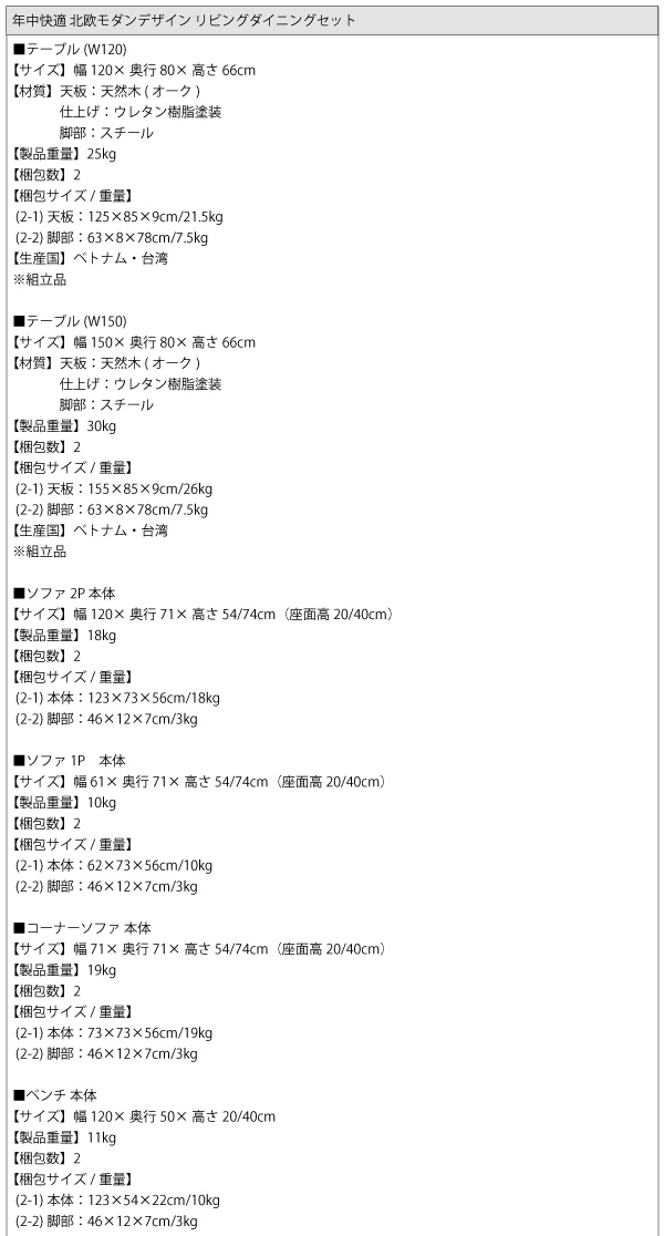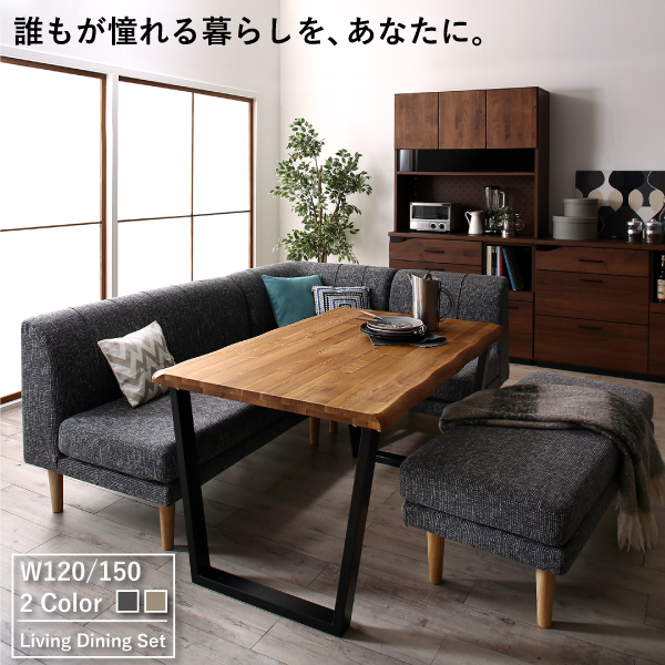 • 品名 ダイニングソファセット Laven【レーヴン】4点セット(無垢材ダイニングテーブル+2Pソファ1脚+1Pソファ1脚+コーナーソファ1脚) 幅150cm 4人掛け