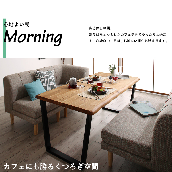 ダイニングソファセット Laven【レーヴン】4点セット(無垢材ダイニングテーブル+2Pソファ1脚+1Pソファ1脚+コーナーソファ1脚) 幅150cm 4人掛けの商品写真