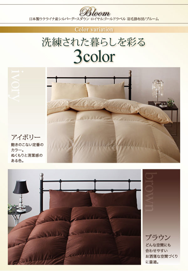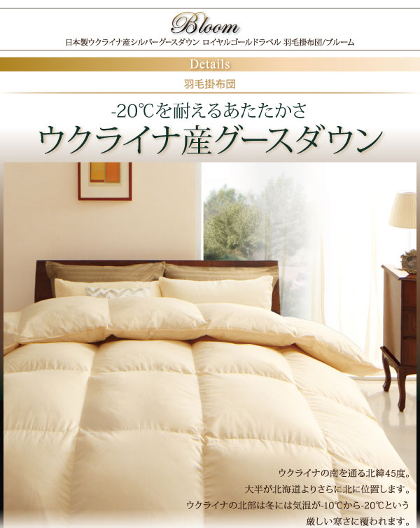 • 品名 日本製ロイヤルゴールドラベル羽毛掛け布団 Bloom【ブルーム】キング