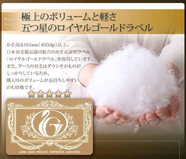日本製ロイヤルゴールドラベル羽毛掛け布団 Bloom【ブルーム】キングの商品写真