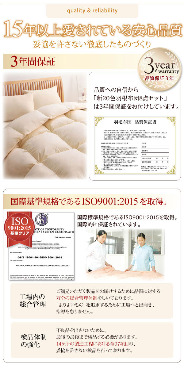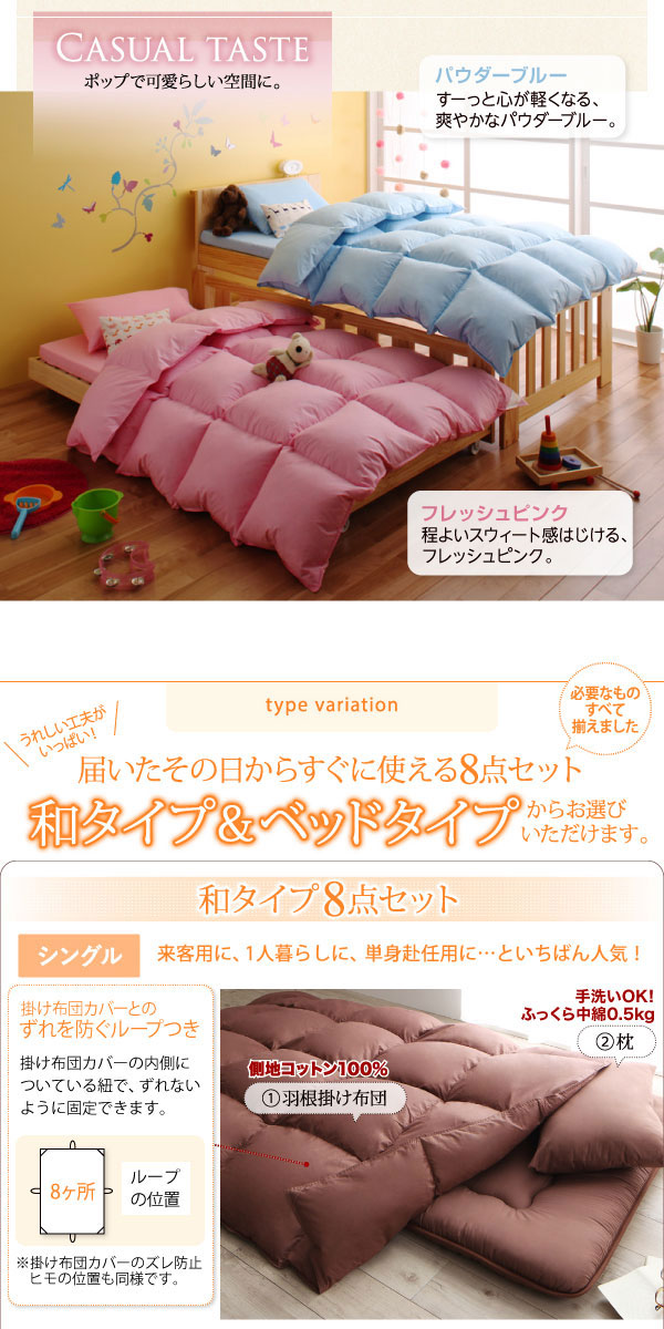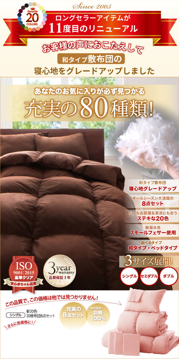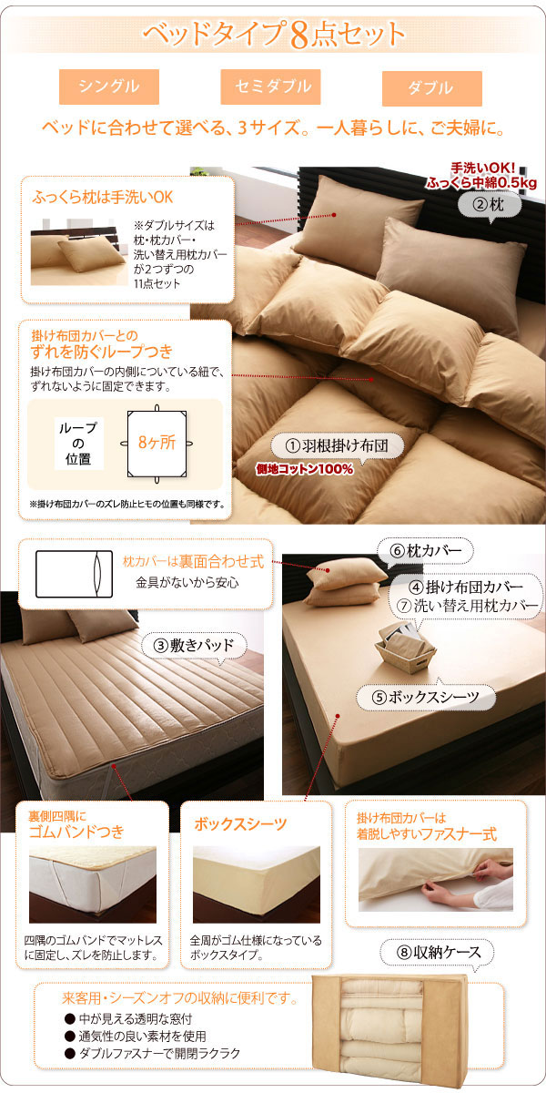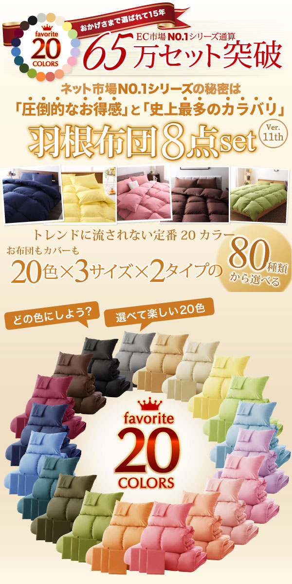 新20色羽根布団8点セット ベッドタイプ&和タイプ ダブルの商品写真