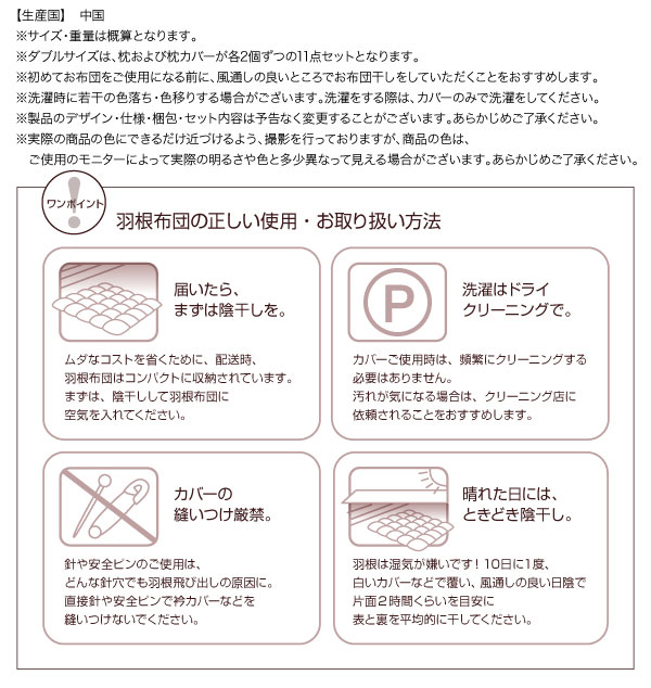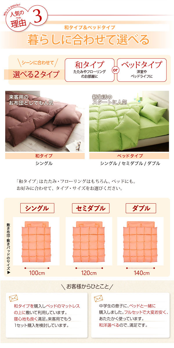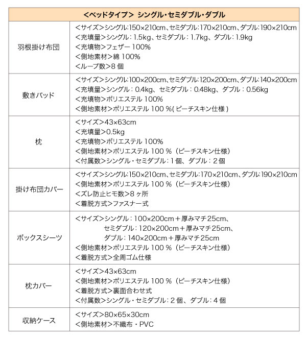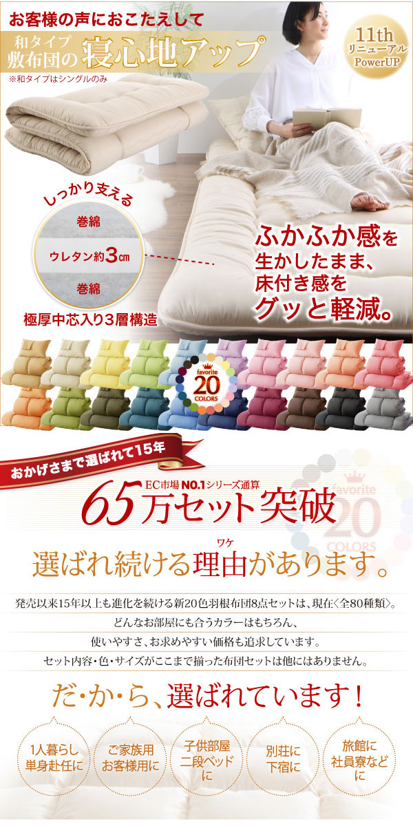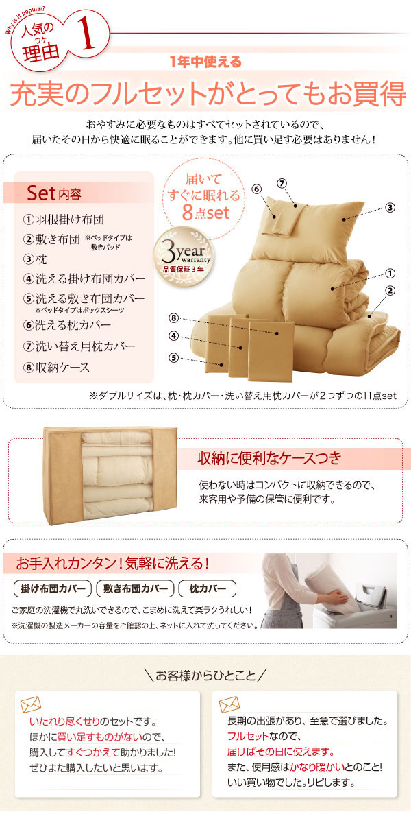 新20色羽根布団8点セット ベッドタイプ&和タイプ ダブルの商品写真