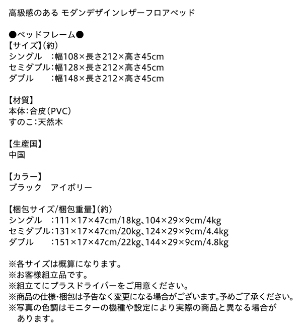 • 品名 モダンデザインレザーローベッド GIRA SENCE【ギラセンス】ベッドフレームのみ セミダブル