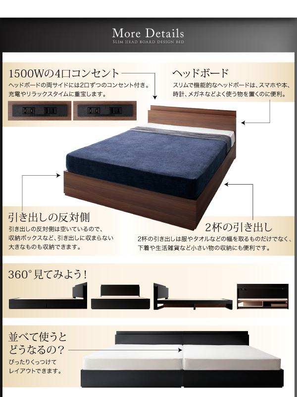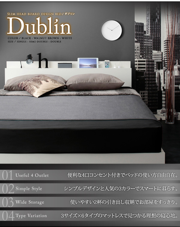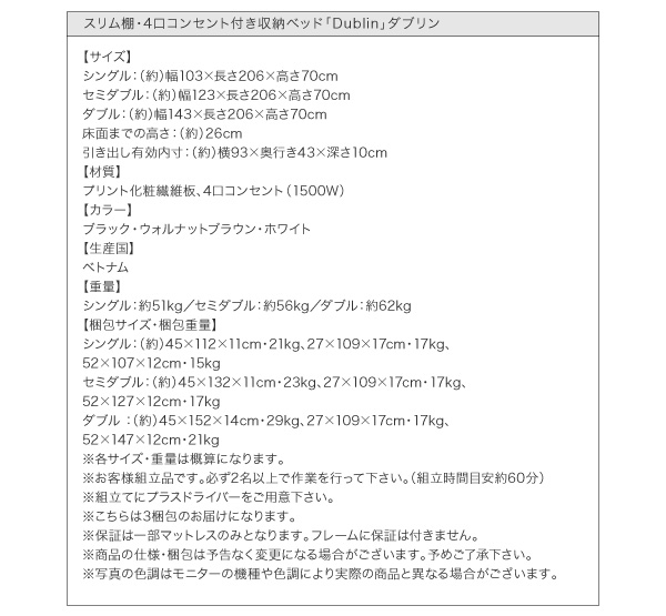 • 品名 スリム棚・4口コンセント付き収納ベッド Dublin【ダブリン】ベッドフレームのみ シングル