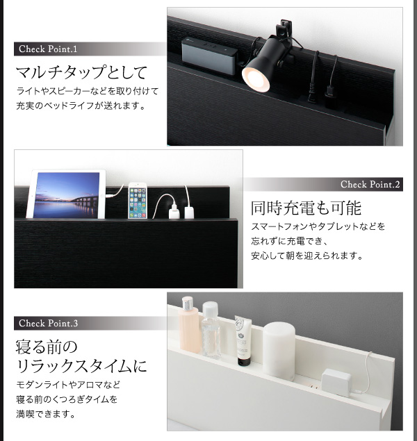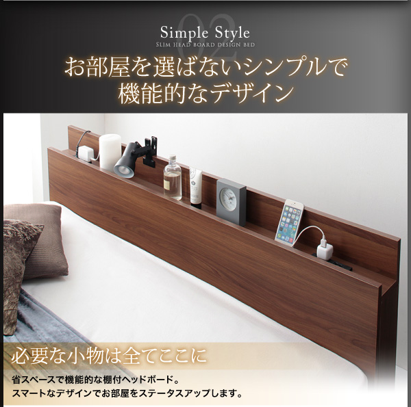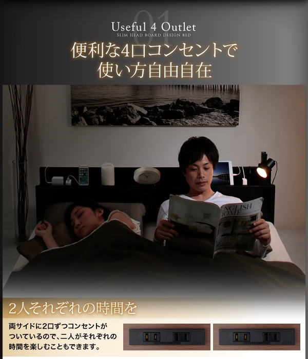 スリム棚・4口コンセント付き収納ベッド Dublin【ダブリン】ベッドフレームのみ シングルの商品写真
