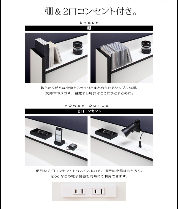 棚・コンセント付き収納ベッド Fouster【フースター 】ベッドフレームのみ ダブルの商品写真
