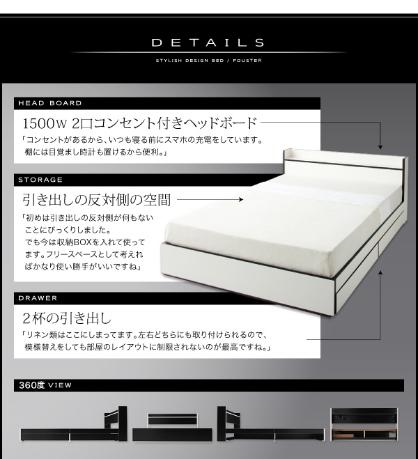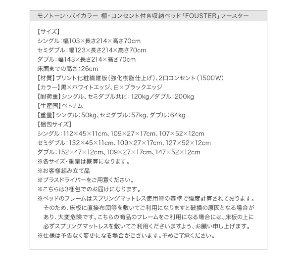 • 品名 棚・コンセント付き収納ベッド Fouster【フースター 】ベッドフレームのみ ダブル