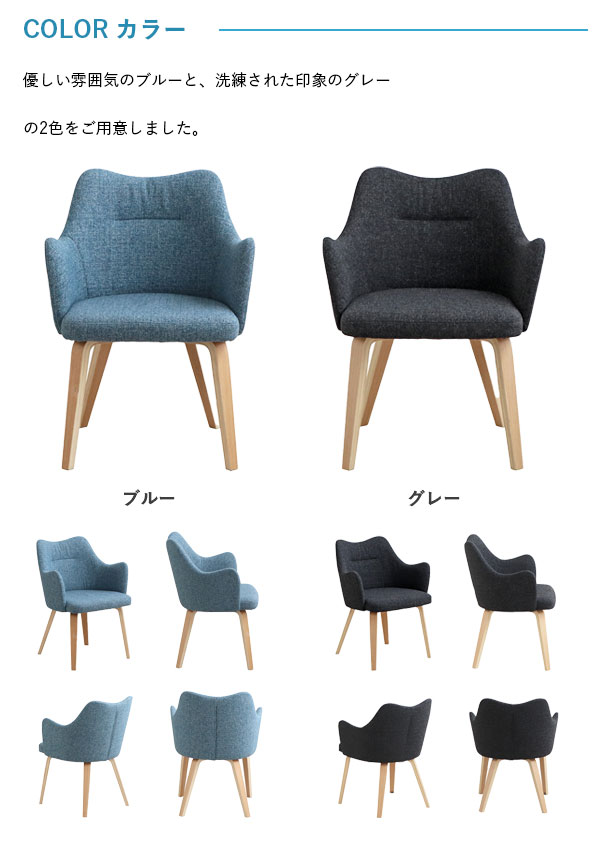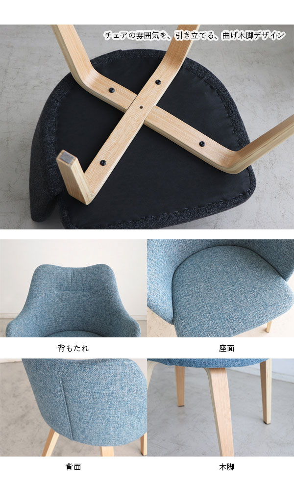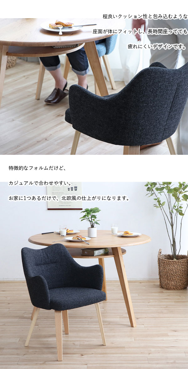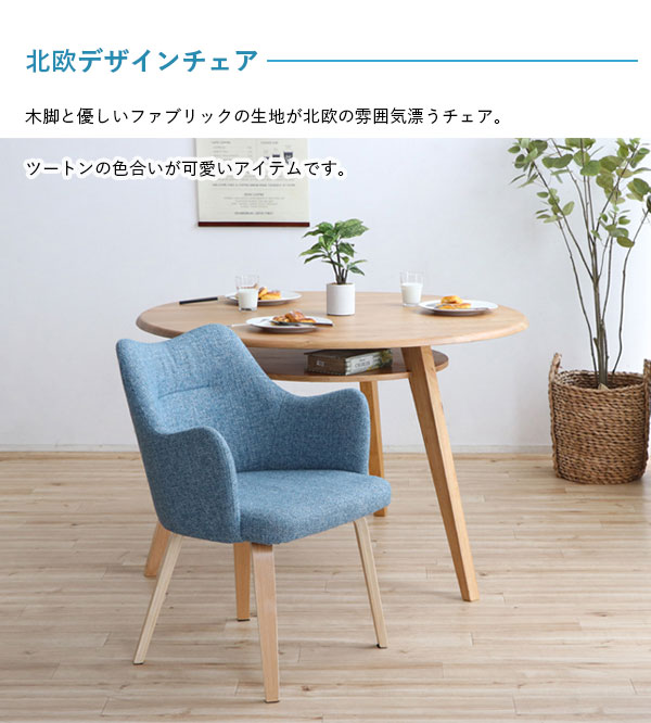 北欧インテリアな雰囲気を醸し出したチェア、やさしい色合いの曲木脚と2カラーのファブリックが柔らかい北欧ナチュラルインテリアを作り出してくれます!背もたれから肘掛までの流れるようなプロダクトがデザイナーズ家具のような高級感も与えてくれます。