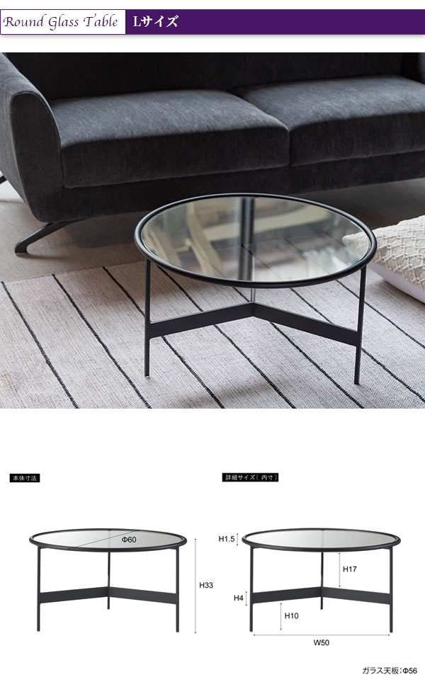シンプルでスタイリッシュなガラステーブル マットなブラックアイアンの滑らかな曲線とハードなガラスを組み合わせたLサイズのローテーブル。 リビングテーブル/サイドテーブルとして使用したり、2台並べてネストテーブルとしても使用できます。 脚部は10mm角のシャープなラインが際立ち、透明なガラス天板との組み合わせは圧迫感の無い開放的な空間を演出します。
