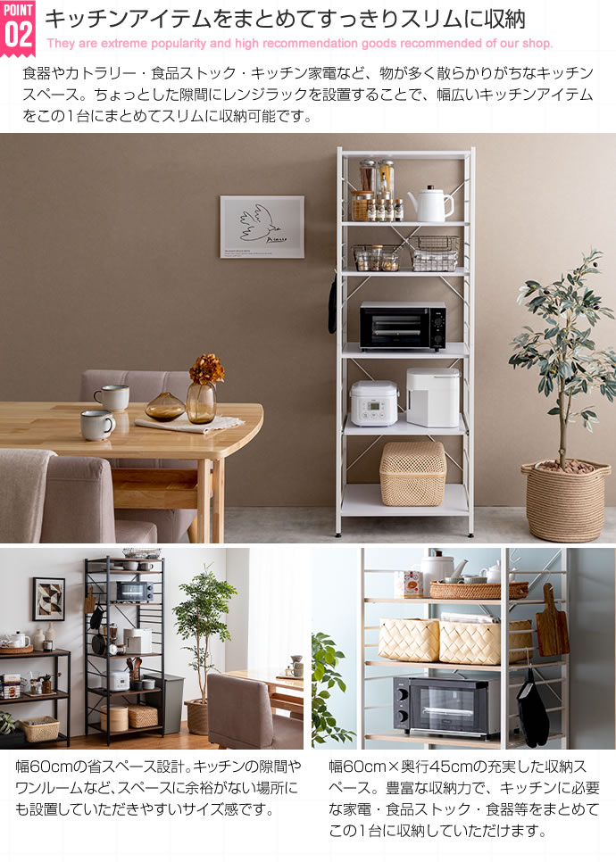 スリムなフォルムでちょっとしたキッチンの隙間を有効的に活用する『Cammy(キャミー)』のレンジラック