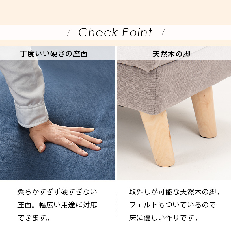 オットマンとして、来客時のスツールとして使えます。ロー/ハイ兼用