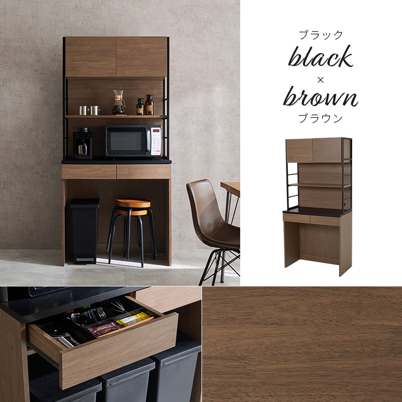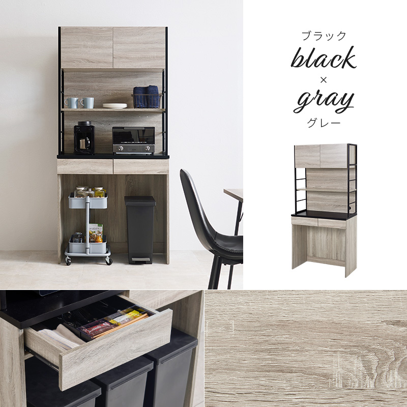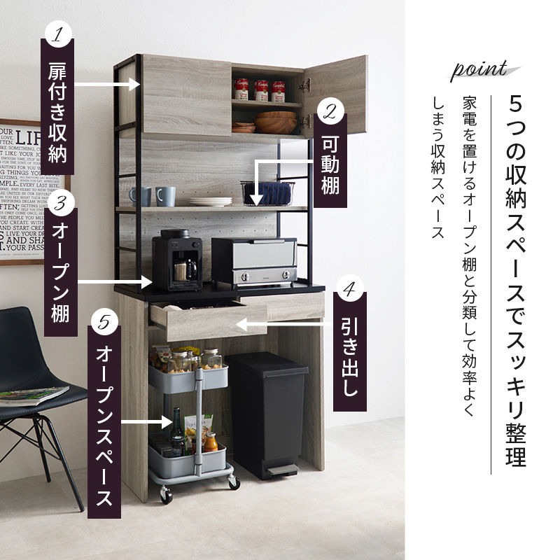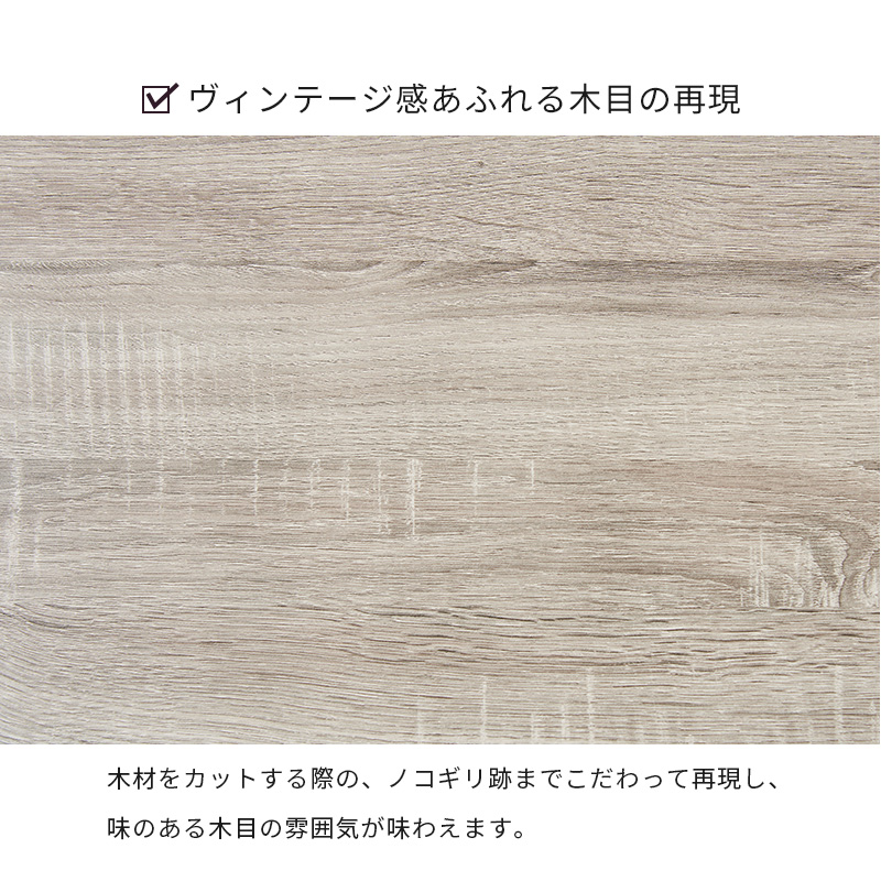 アイアンと木目調シートのヴィンテージな組み合わせ。ダストボックスやキッチンワゴンの上置き収納としてキッチンをスッキリ整理。