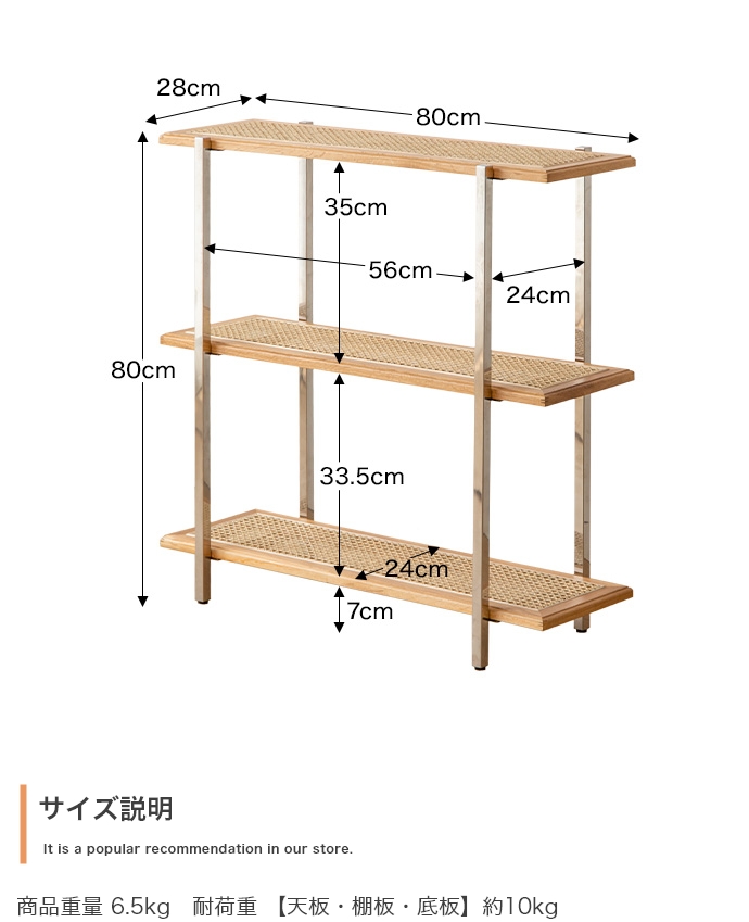 幅80cm×奥行28cm×高さ80cm・6.5kg