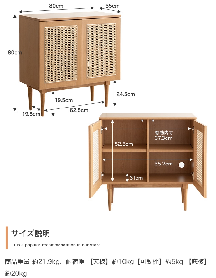幅80cm×奥行35cm×高さ80cm・21.9kg