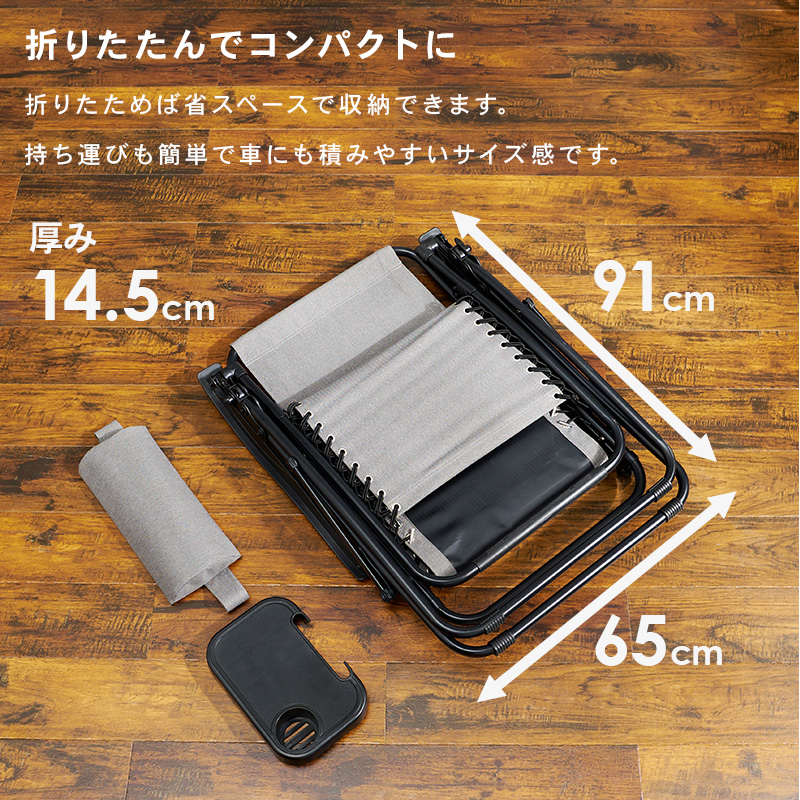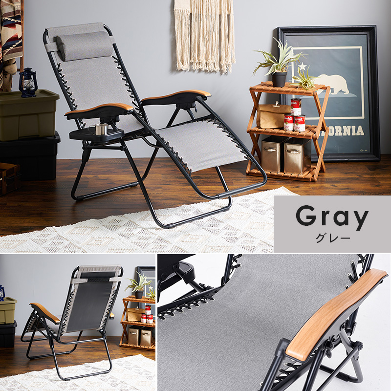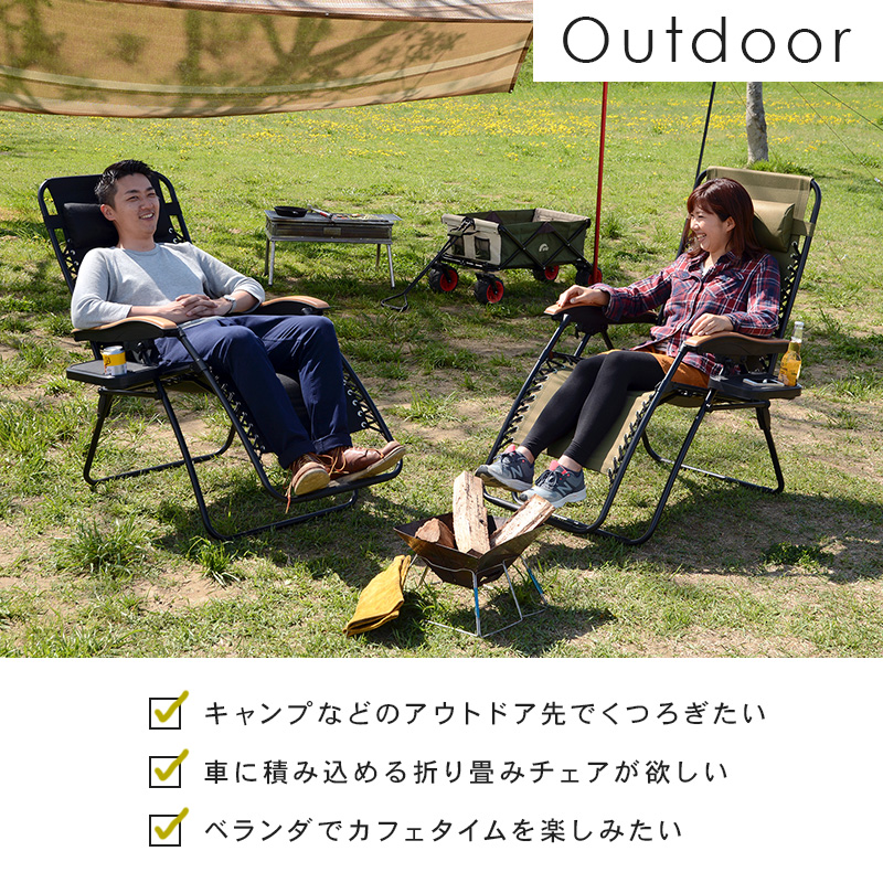 アウトドア、インドアどちらでも使える、シーンを選ばないハイバックのフォールディングチェア。デザイン性の高い木目調の肘掛けは、ウェーブの掛かった形状で腕も疲れにくい。快適のくつろげるヘッドレストはお好みの高さに調節できます。便利なドリンクホルダーとサイドテーブル付き。折り畳みが出来るのでコンパクトに収納できます。