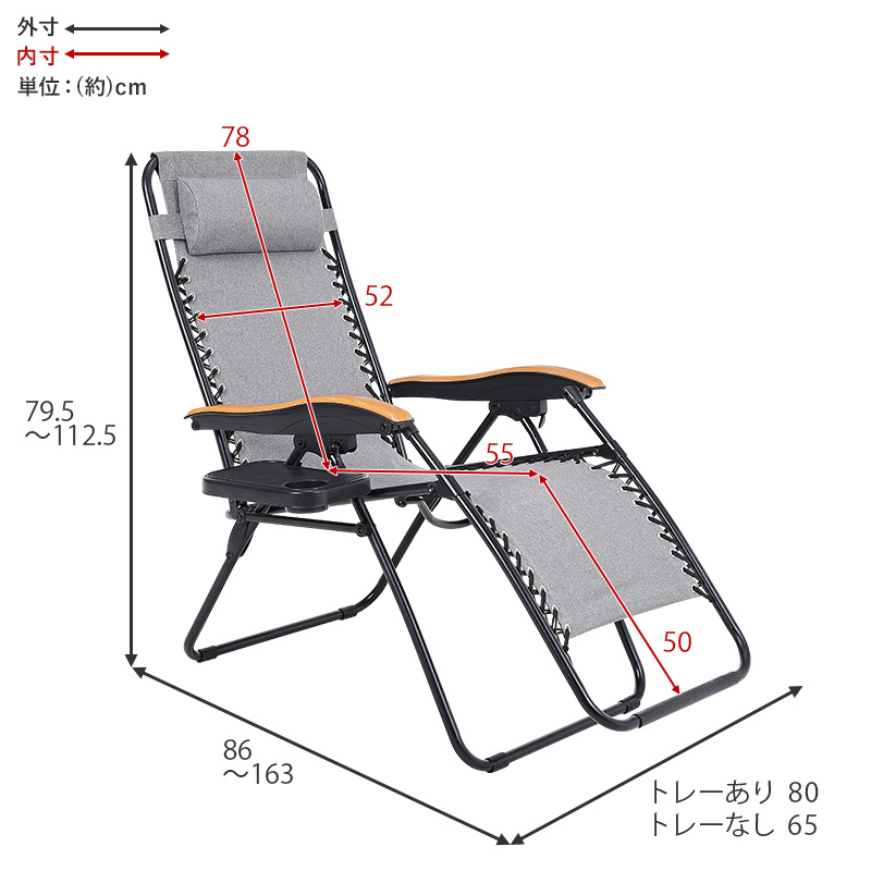 (約)幅80×奥行86~163×高さ79.5~112.5×座面高46cm