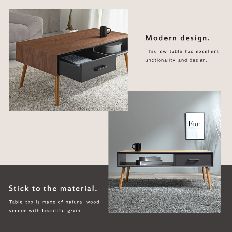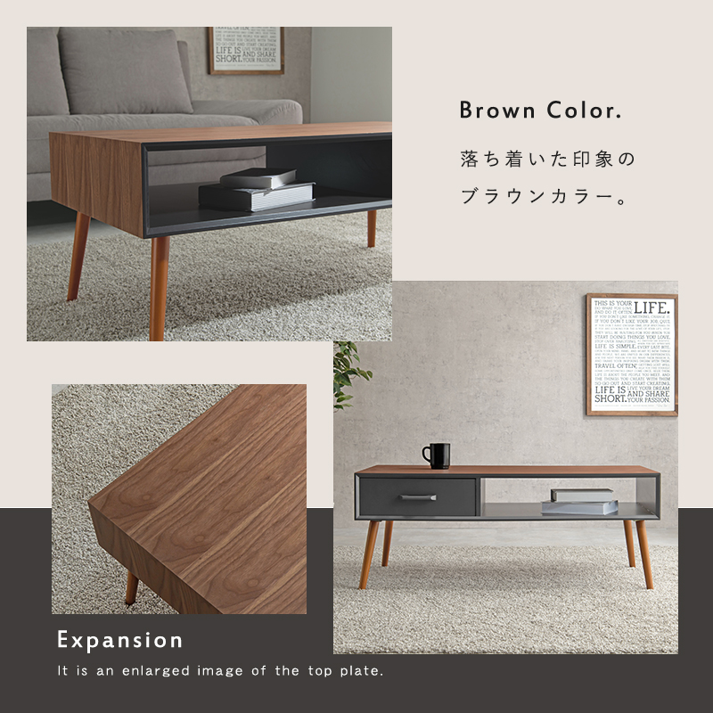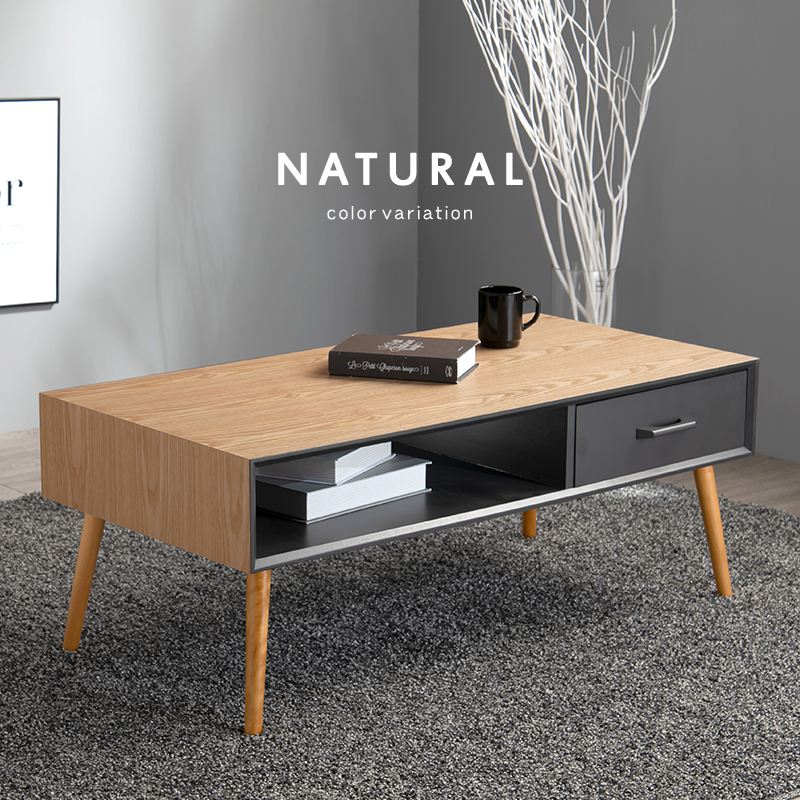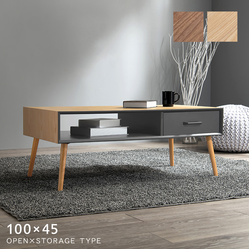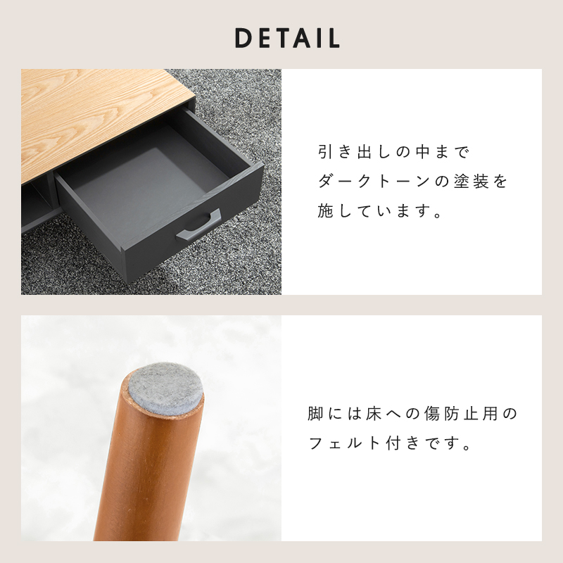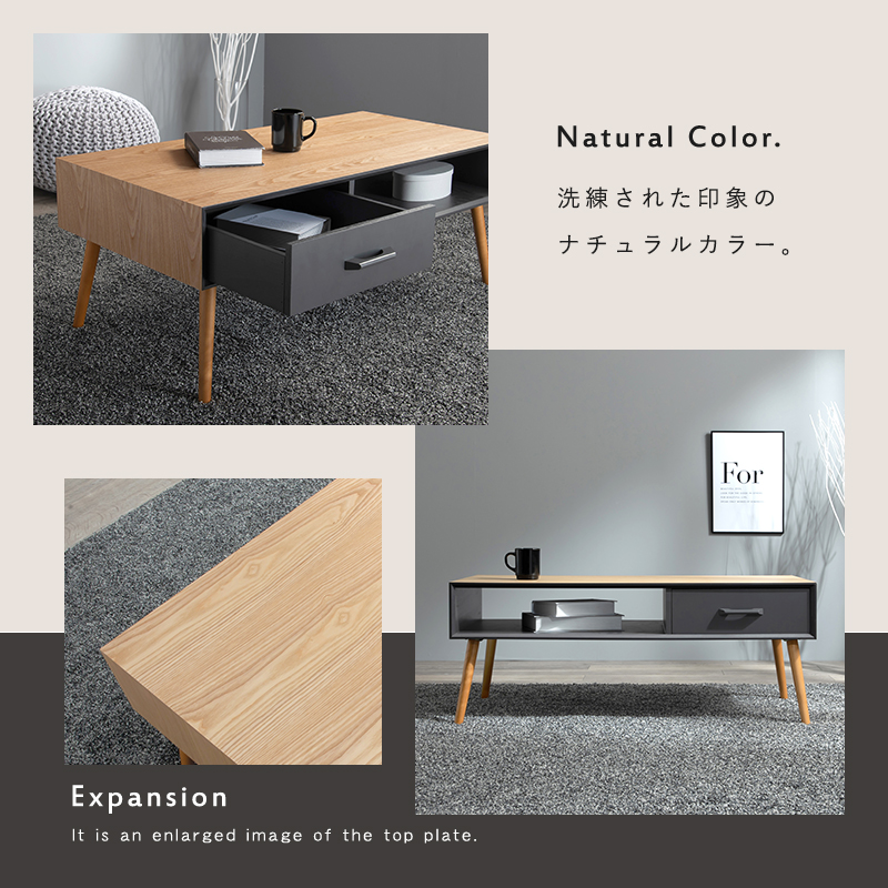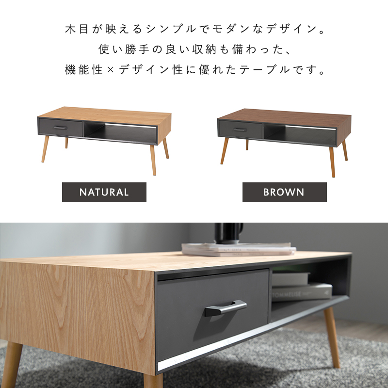 木目が映えるシンプルでモダンなデザイン。使い勝手の良い収納付き。幅100cm